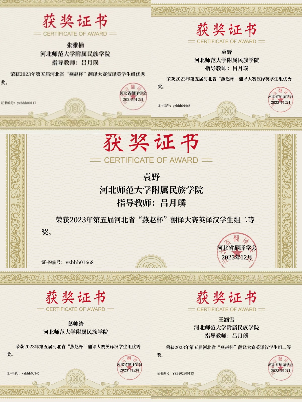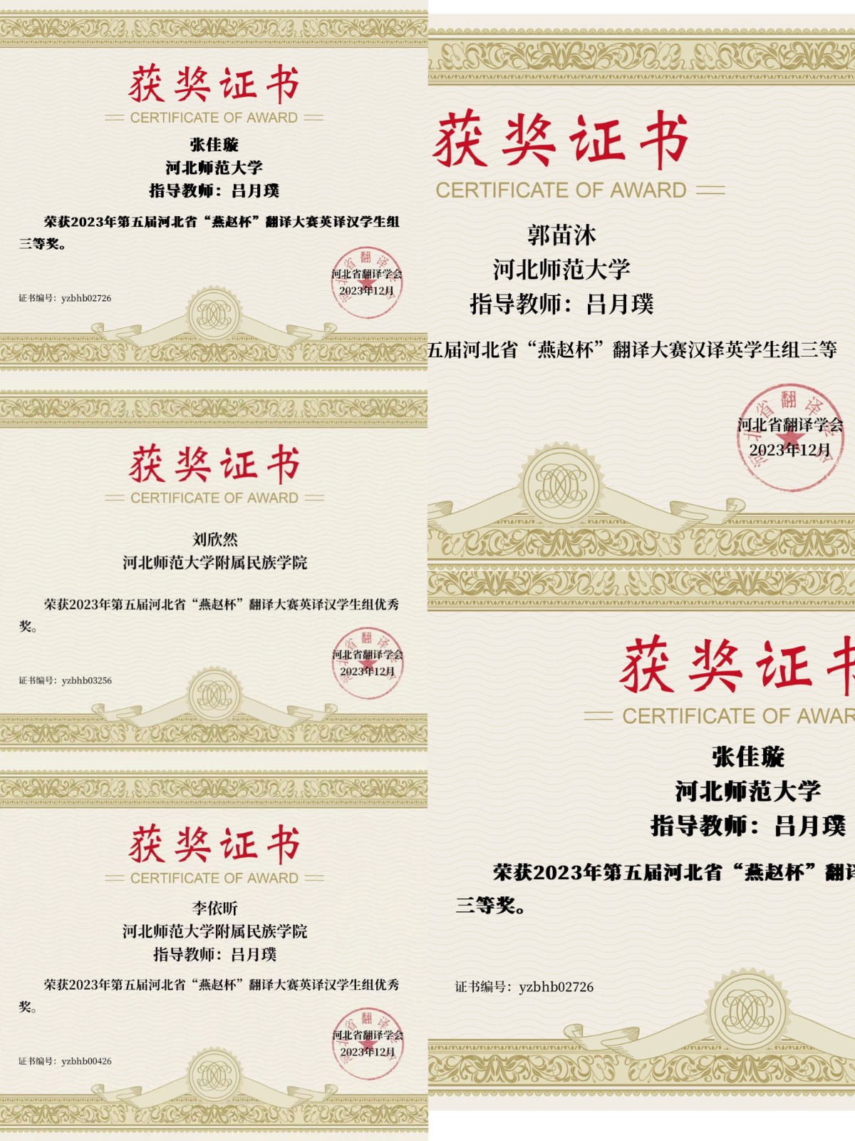 必赢官网英语系学生在河北省“燕赵杯”翻译大赛中荣获佳绩