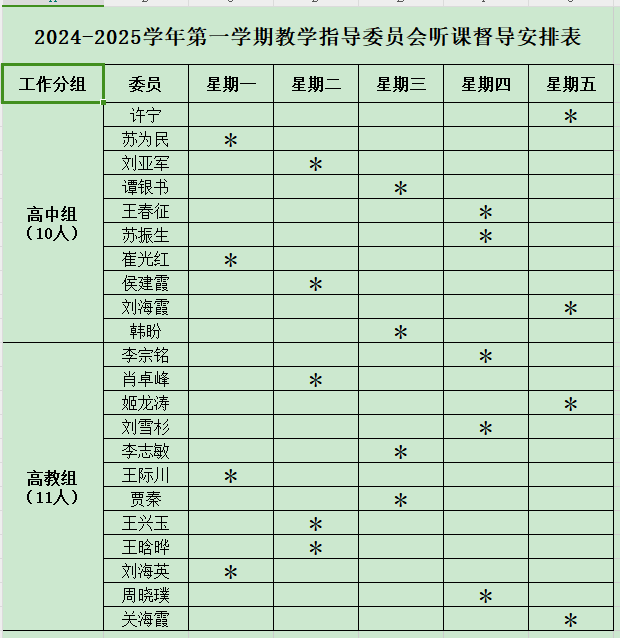 2024-2025学年第一学期教学指导委员督导听课安排