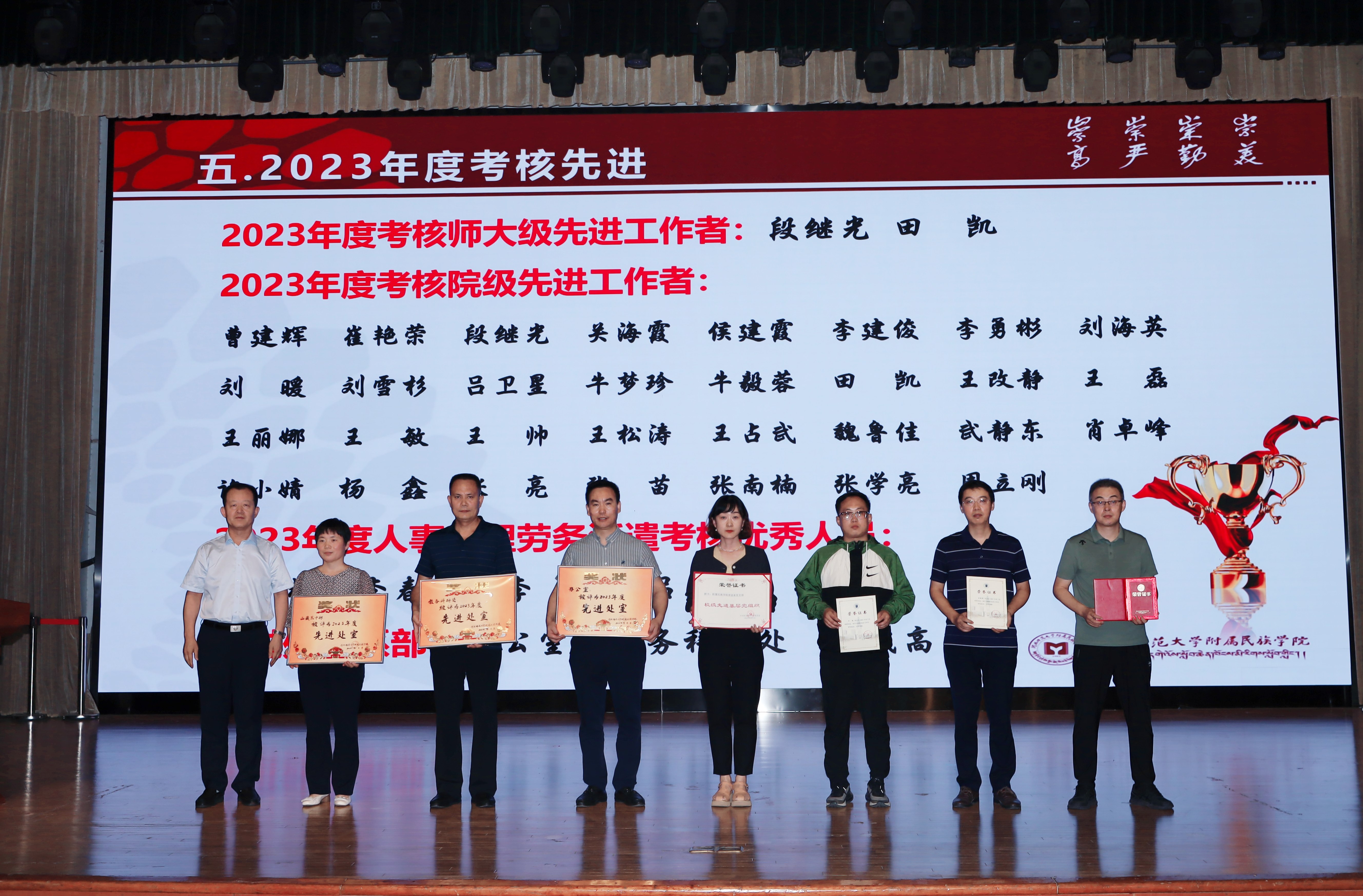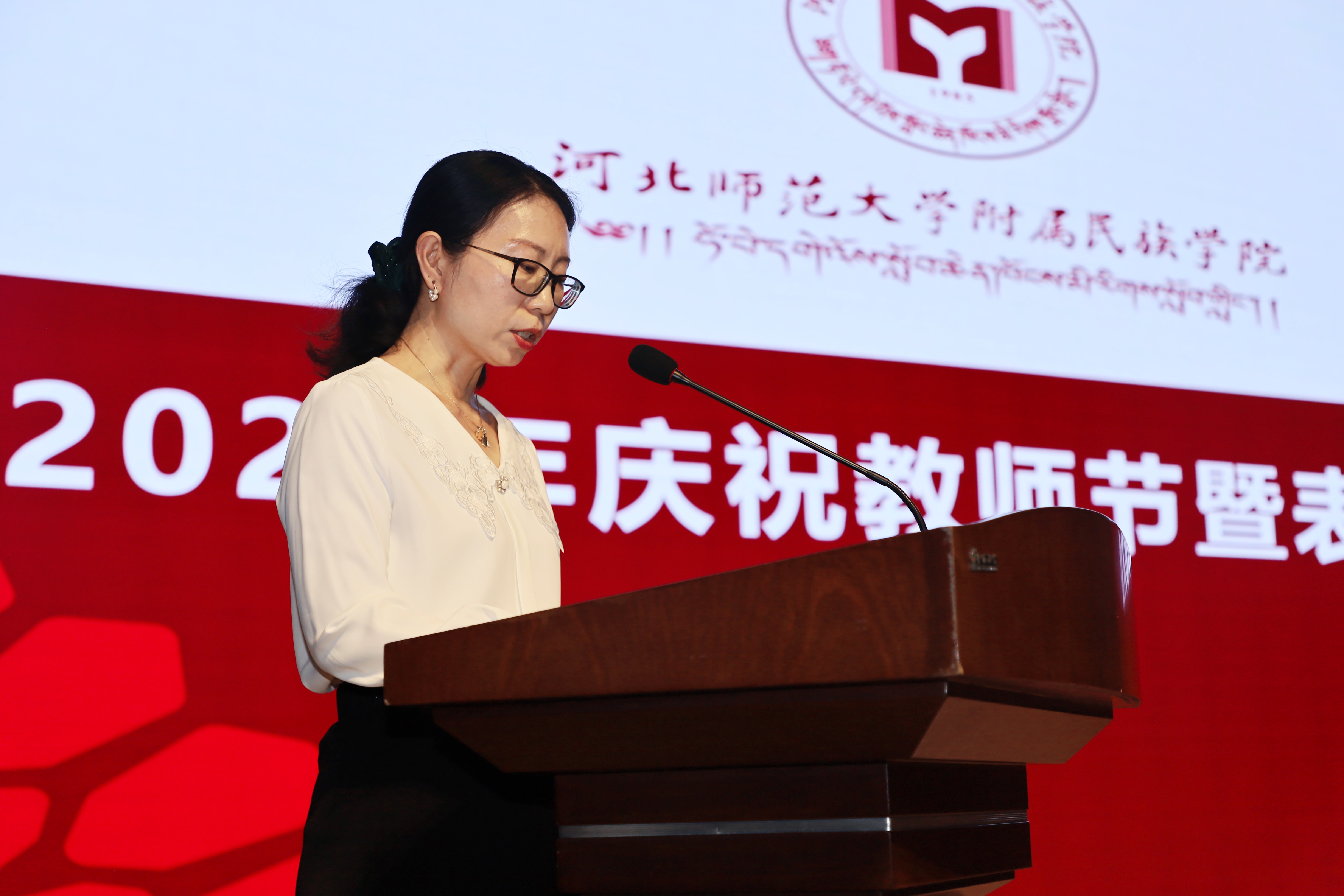 院长刘森代表学院党委和行政向辛勤工作在各个岗位上的全体教职工致以节日的问候!向受表彰的优秀个人和集体表示热烈祝贺!向为学院发展作出积极贡献的离退休老同志表示崇高敬意!他与在场老师们分享了三点想法。一是要时刻不忘学习。在学院推进转型创新高质量发展过程中,一批优秀教师紧跟党的政策和方向,在努力学习中尝试新事、攻克难事,取得了新成绩新突破。他希望全体教工要继续保持学习的主动性、自觉性,努力做到“学思用贯通,知信行统一”,永不停止学习的脚步。二是要尊重所有付出。四十年来,学院一代代教职工忠诚于党的教育事业,秉承“崇高,崇严,崇勤,崇美”的校训精神,在平凡的工作岗位上坚持爱校如家,为人师表,勤勉付出,不计得失,辛勤耕耘在教学管理一线,为学院的改革和发展付出了艰辛的努力,把自己的满腔热血和最美丽的青春奉献给了党和人民的教育事业,以实际行动诠释了“四有”好老师的内涵。学院将努力让每一位教师都能安心从教,让每一位教职工都拥有更加强烈的获得感、归属感和幸福感。三是要沉心做事齐创未来。目前,学院正处于转型创新高质量发展新突破的关键节点,面向新时代新问题新发展,全体教职工要更加明确职业责任和职业担当,紧扣“铸牢”主题,紧握时代发展机遇,紧抓发展改革任务,自我加压,躬身入局,笃行担当,不断激发创新活力,在转型创新高质量发展进程中爬坡过坎,奋力前行,全力做好民族教育工作,为自身发展赢得新机遇,为学院转型创新高质量发展创造新格局!