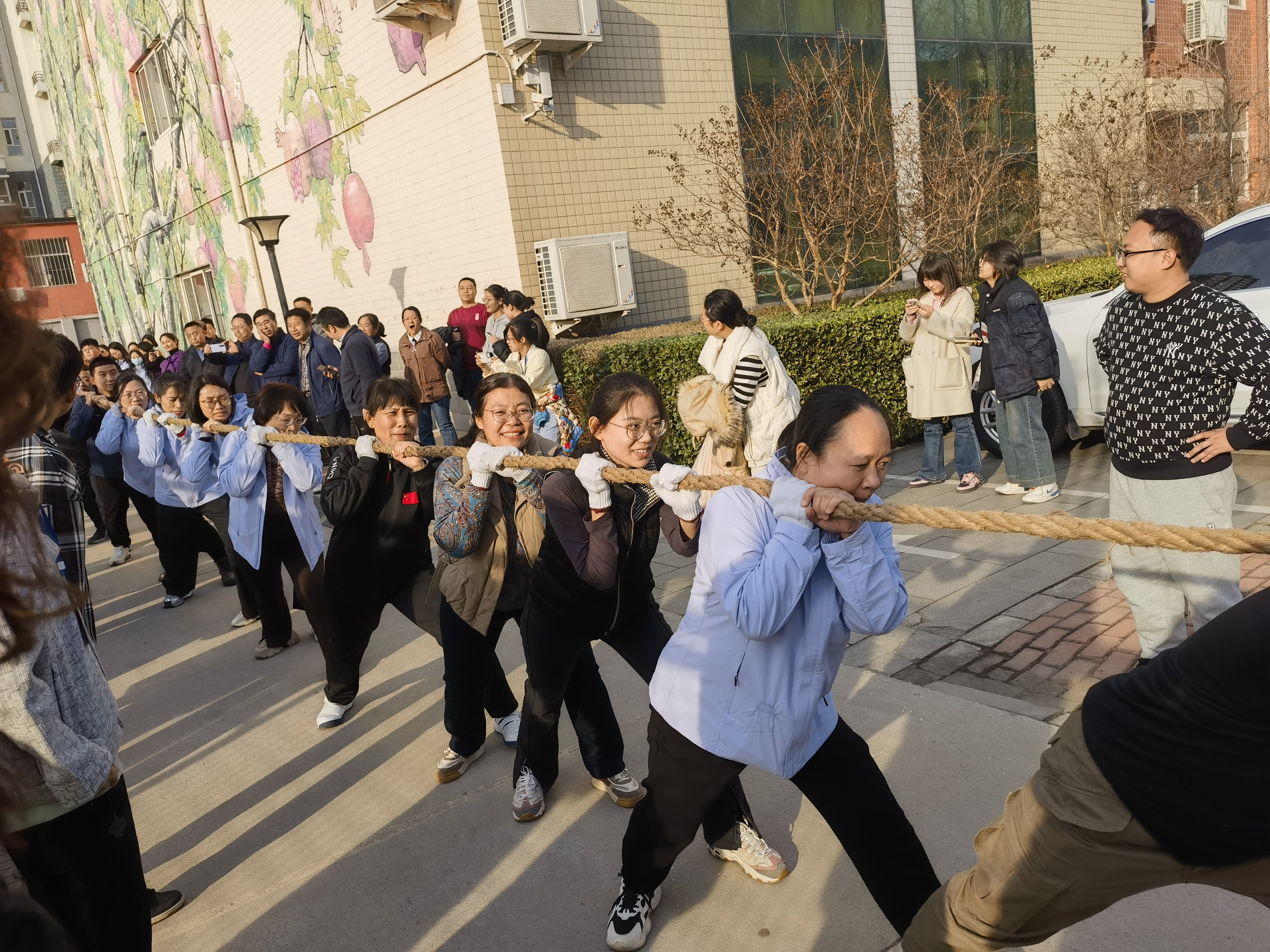 在全院师生喜迎建校四十周年之际,3月6日下午,院工会开展“踔厉奋发,勇往直前”三八妇女节主题活动。来自六个工会小组的140多名教职工参加了团体押加和夹球接力项目的比拼,展现了全体教工激情昂扬的精神风貌。