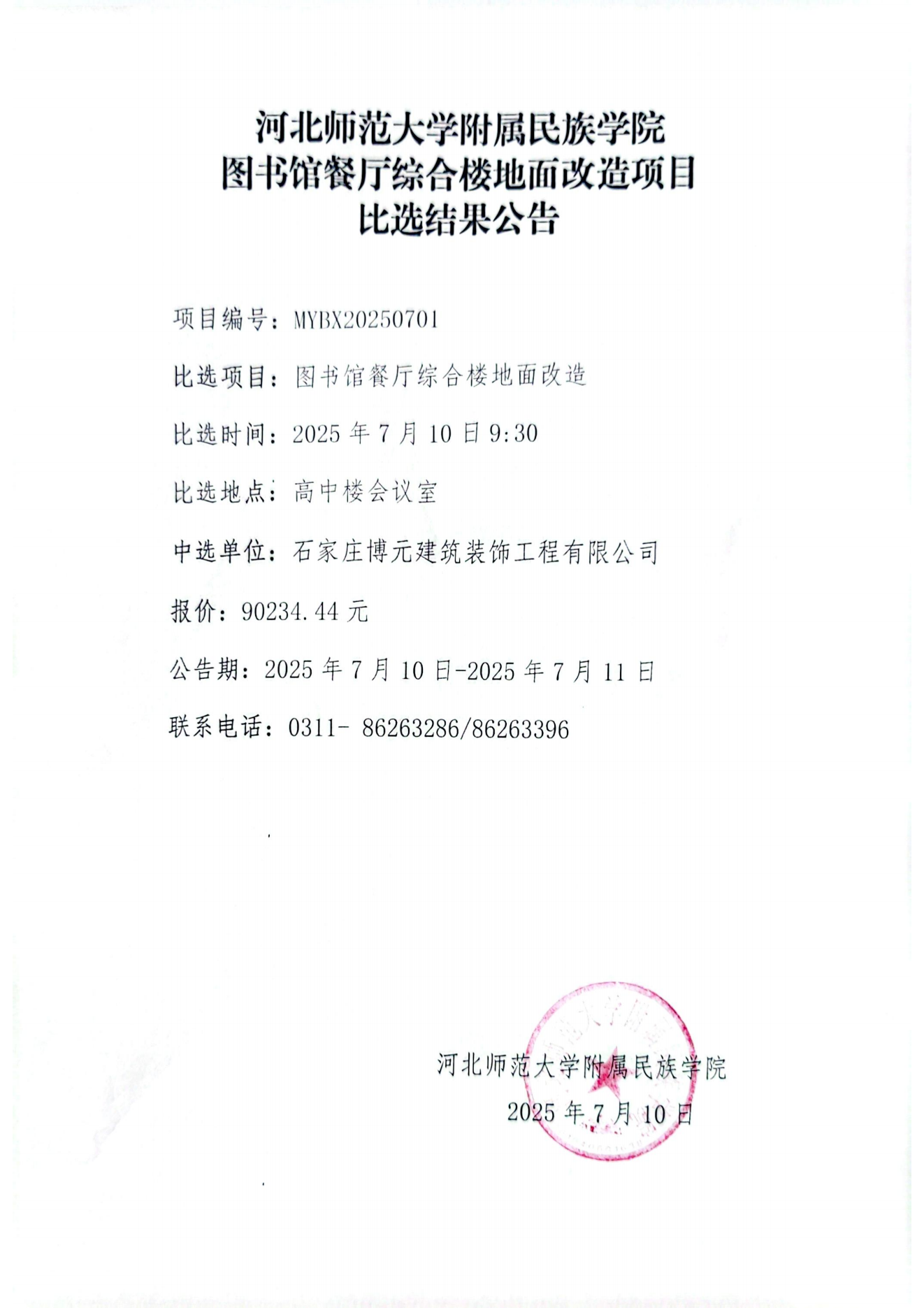 必赢242net官网图书馆餐厅综合楼地面改造项目比选结果公告