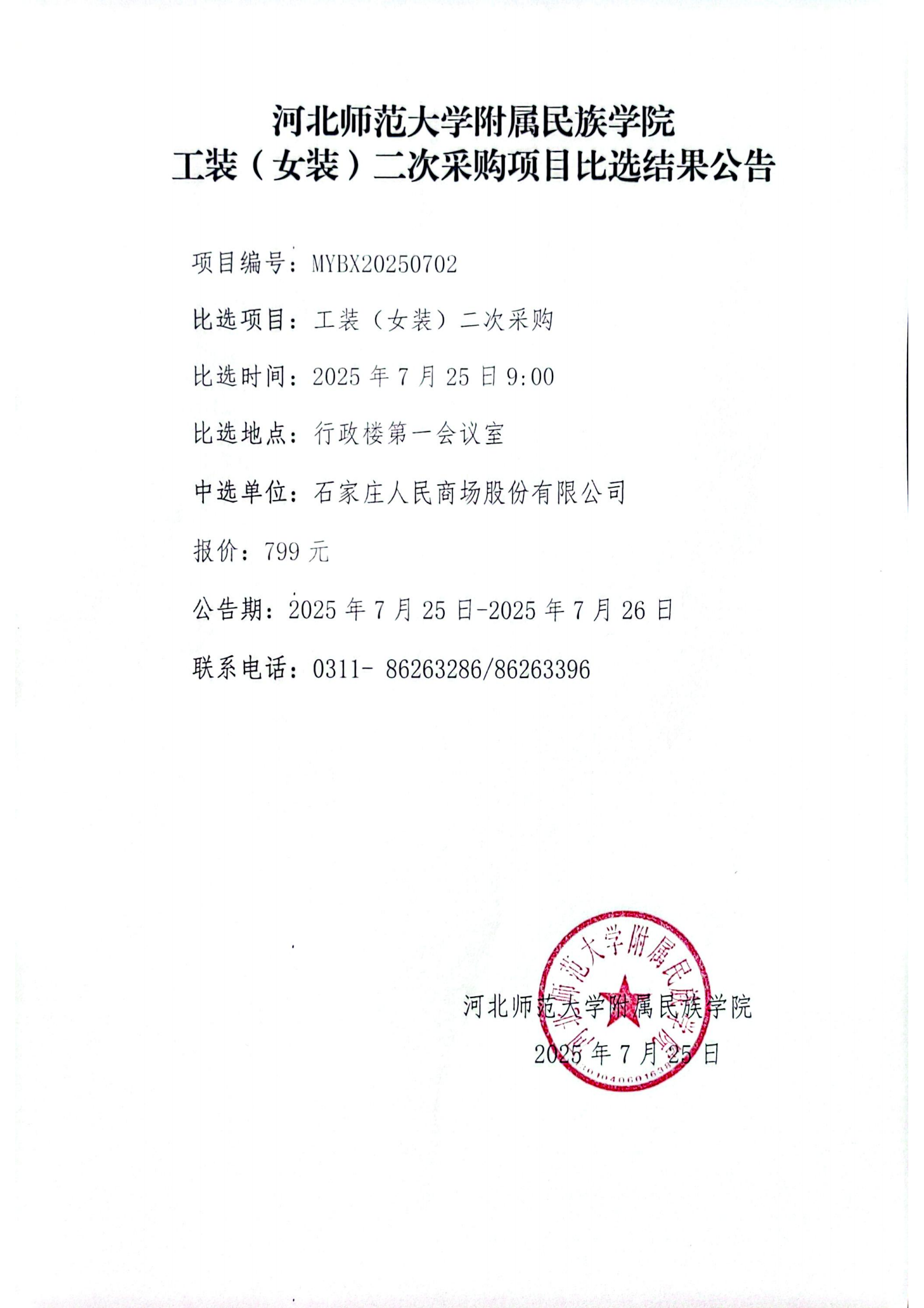 必赢242net官网工装(女装)二次采购项目比选结果公告