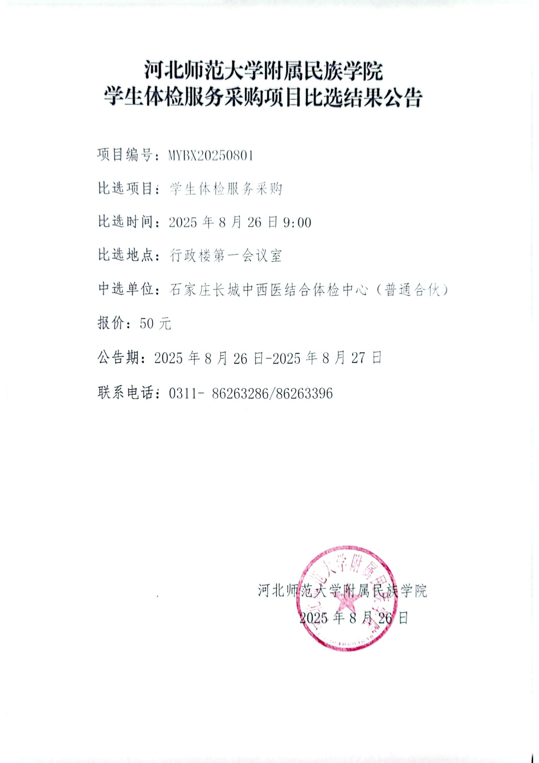 必赢242net官网学生体检服务采购项目比选结果公告