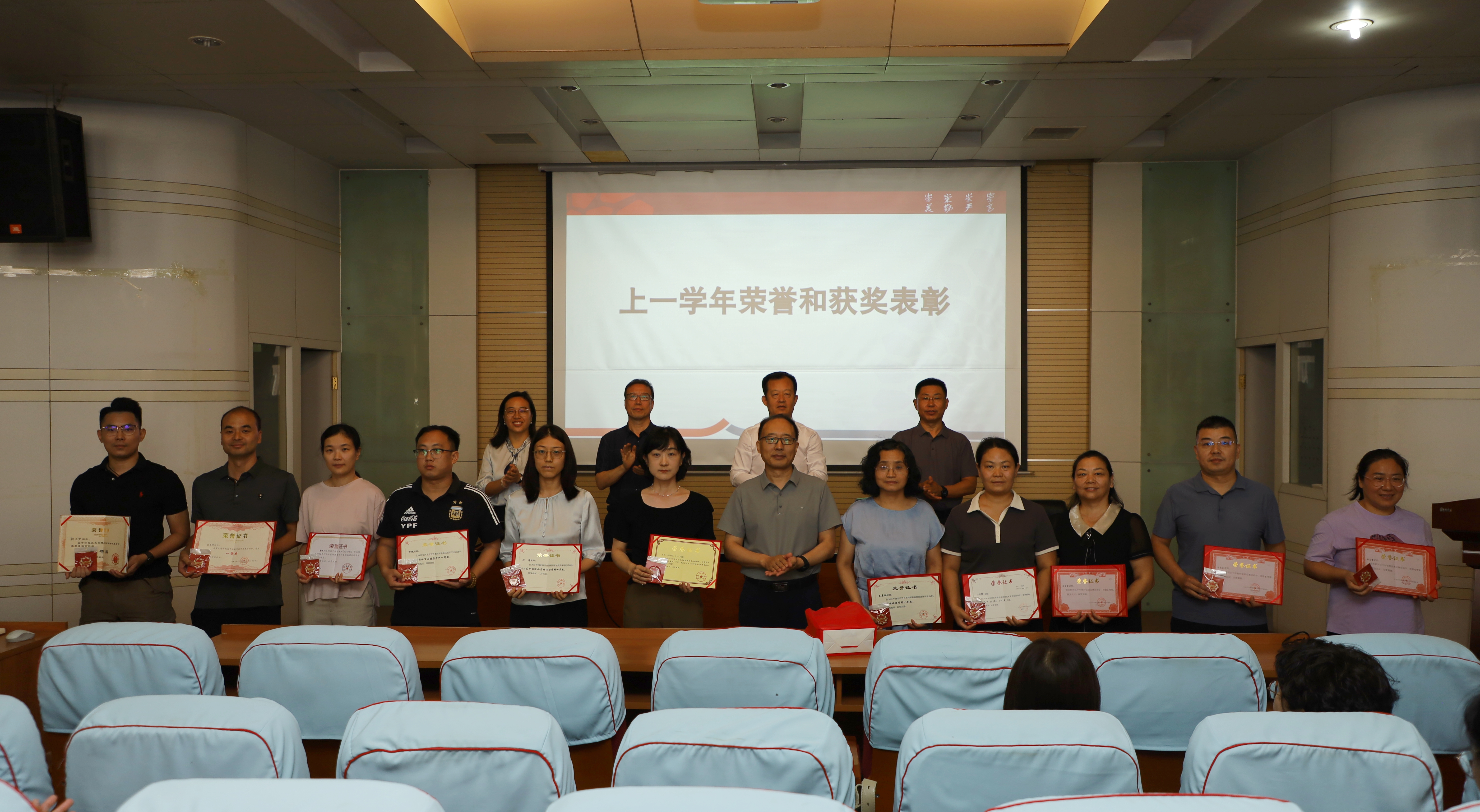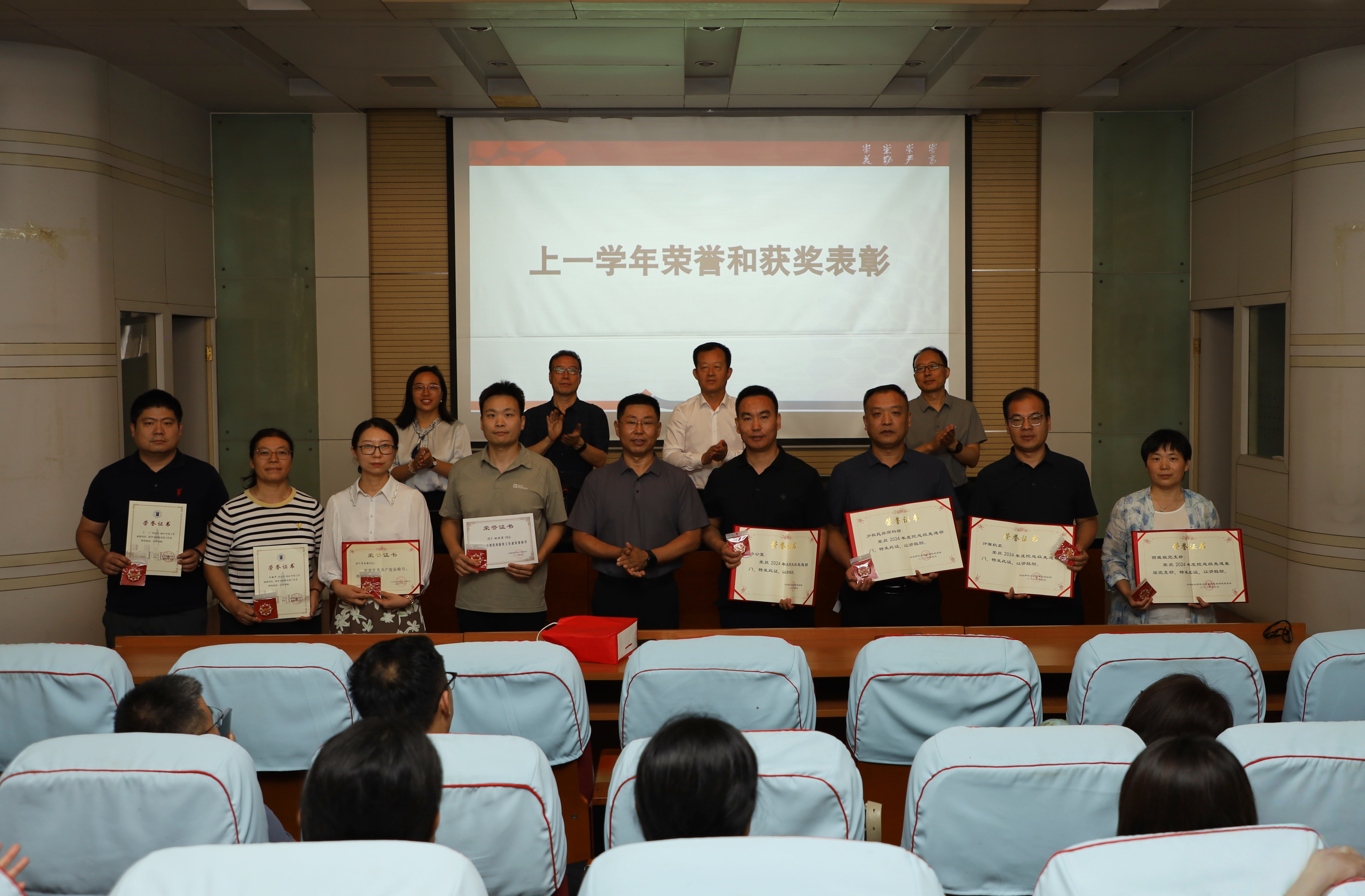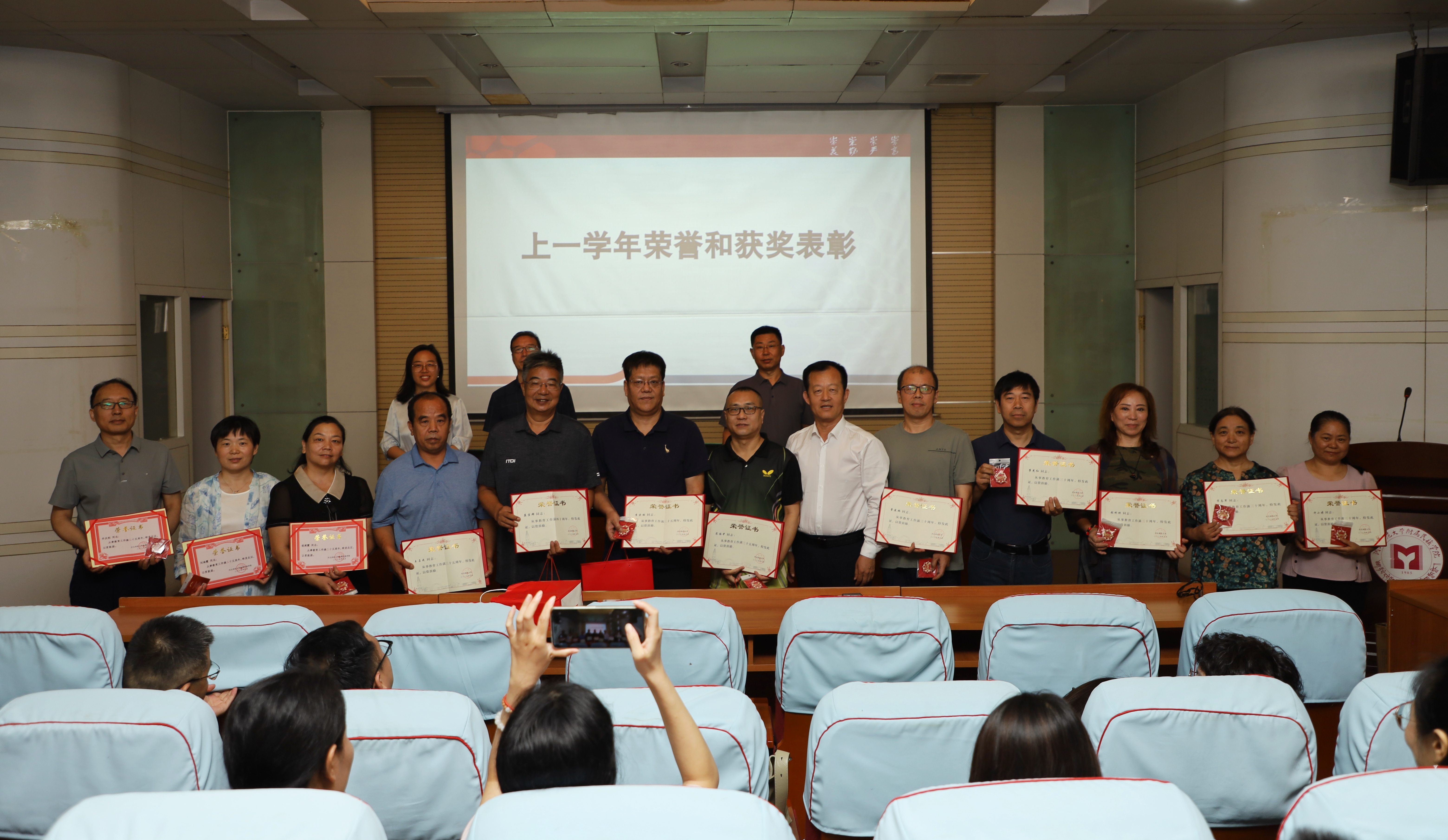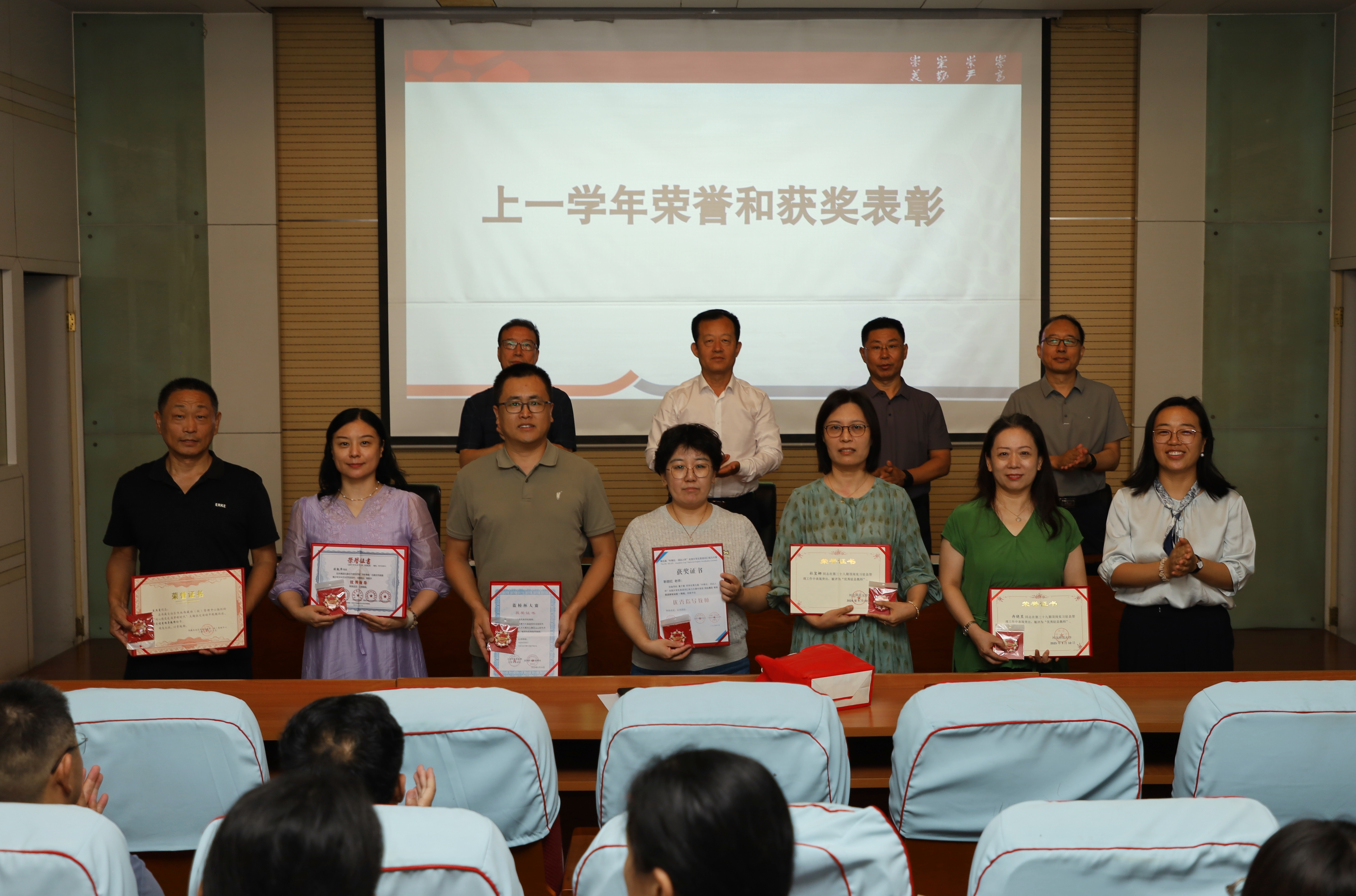 会议对从教满25年、30年、35年、40年的教职工,以及在2024-2025学年度为学院各项事业发展作出突出贡献的教职工进行了集体表彰。