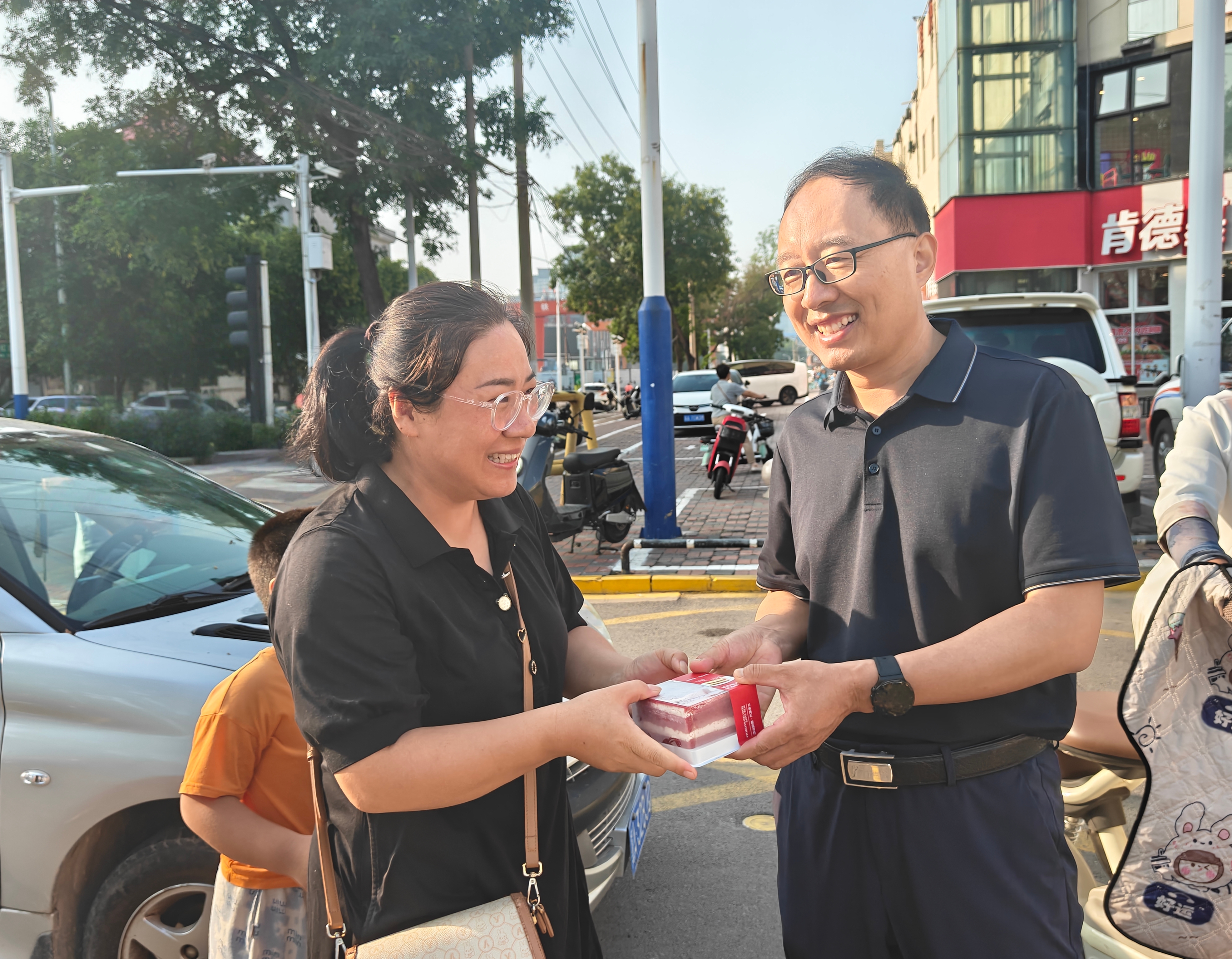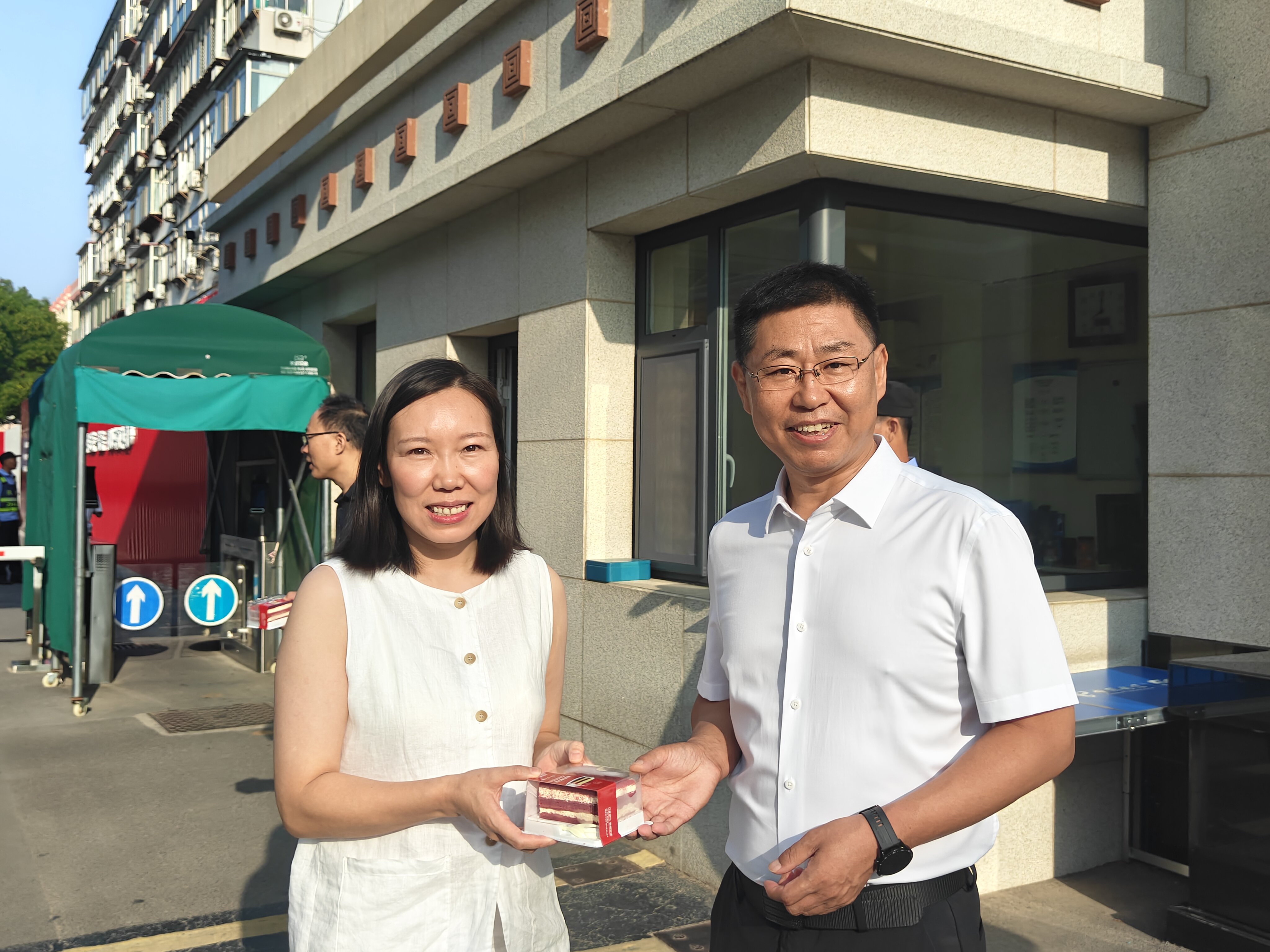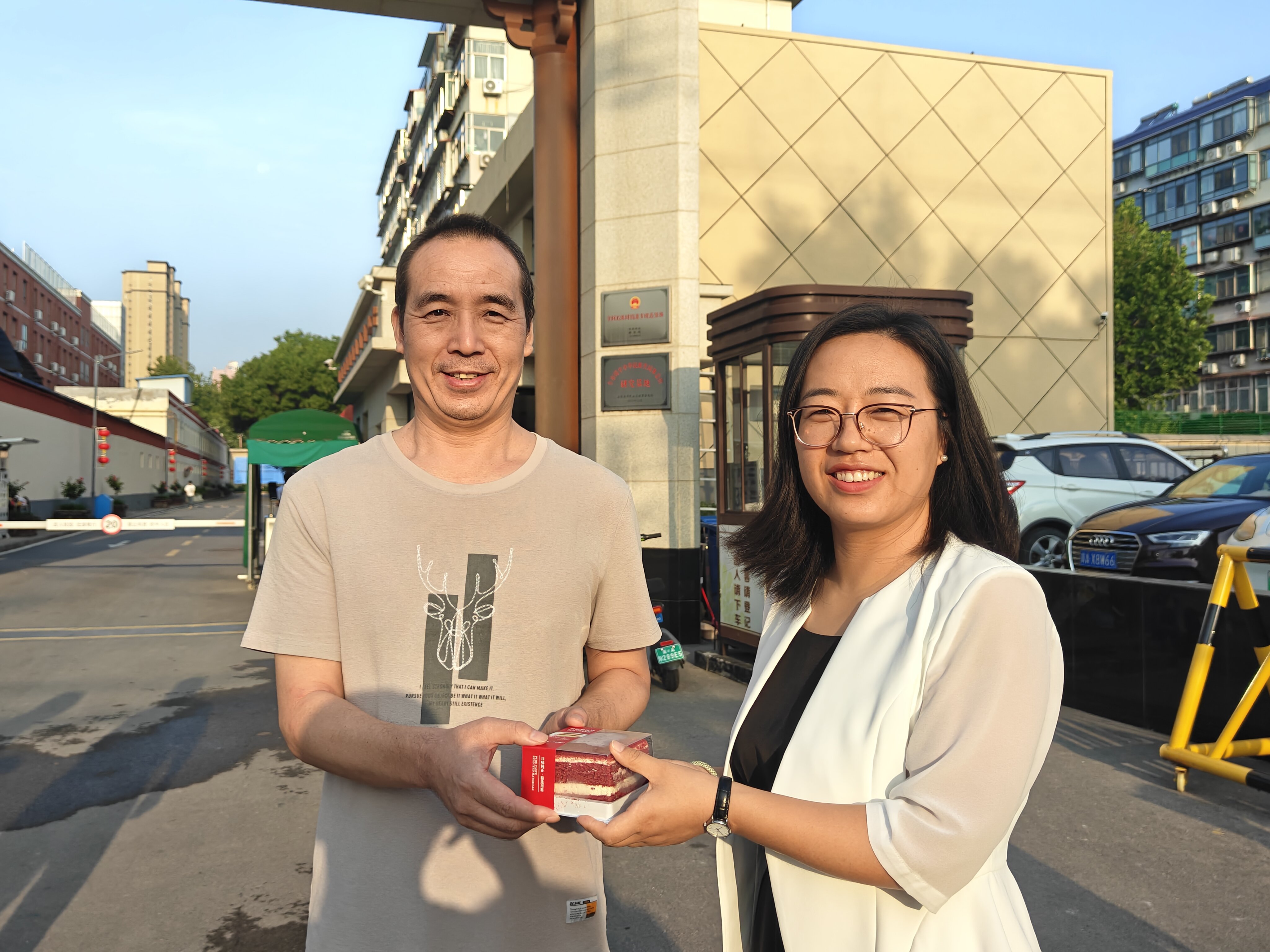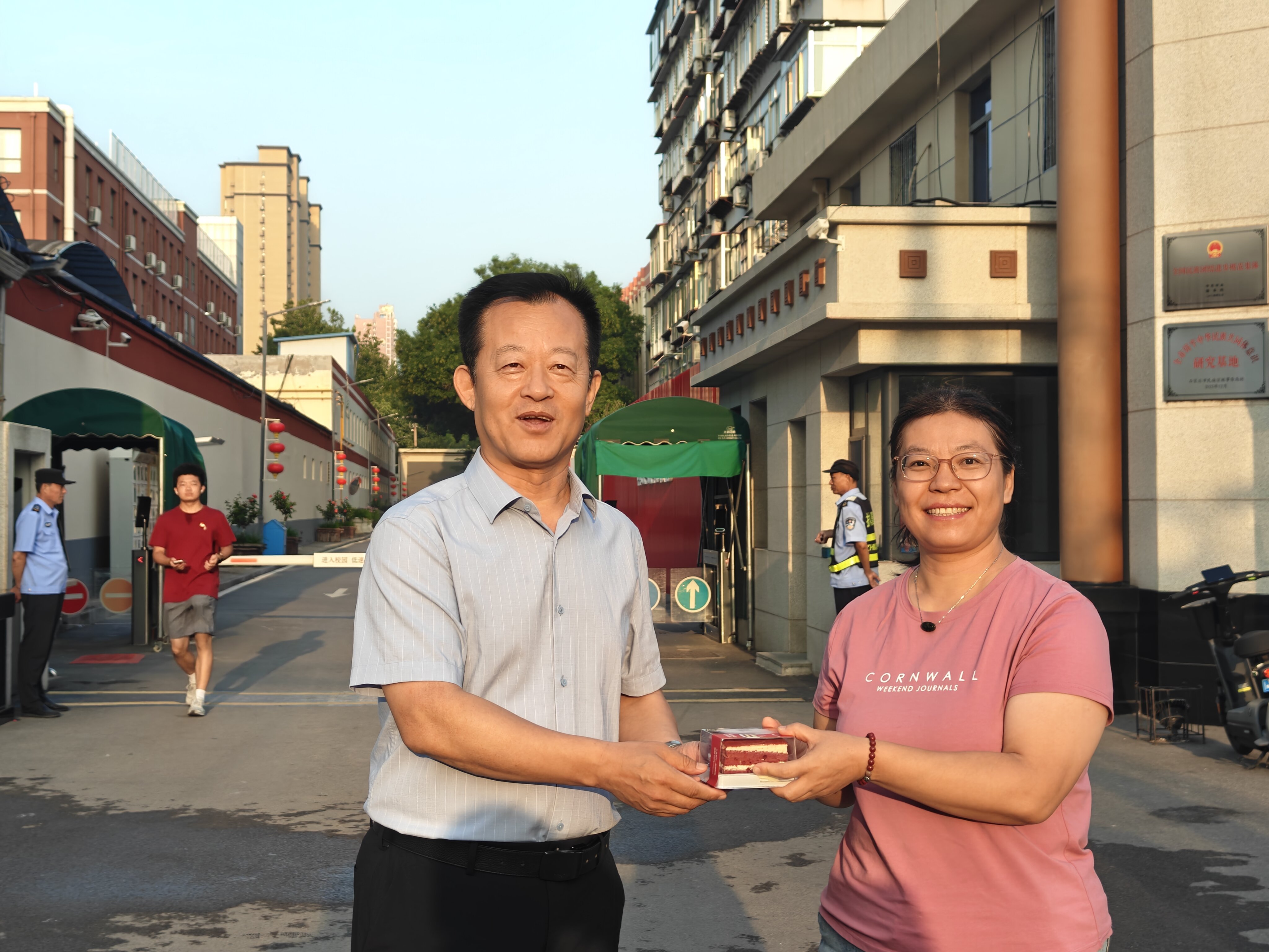 晨光初照时,校园电子大屏滚动播放教师节祝福海报,营造了温馨的节日氛围。学院领导班子早早来到校门,手捧寄托深情的红丝绒蛋糕——以“甜蜜糕点”喻“幸福生活”,以“精致心意”寄“事业美满”。从教学一线教师到后勤人员,每位教职工都收到这份专属惊喜。指尖传递的温度与耳畔亲切的问候,让每一位民院人切实感受到“被看见、被尊重”,节日的仪式感升华为职业荣光,进一步增强了归属感与幸福感。