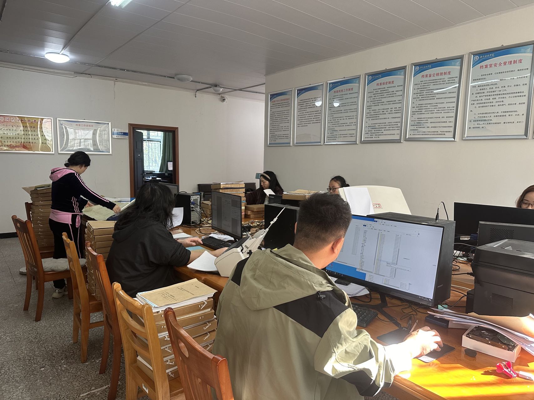 (图书馆)档案馆还采取不定期检查的方式,对档案安全、人员管理、加工内容、加工流程等方面进行检查,发现问题立刻整改。同时,(图书馆)档案馆前移质检关口,逐卷逐件对已加工档案进行校验、核对和验收,全面保障档案数字化加工质量。