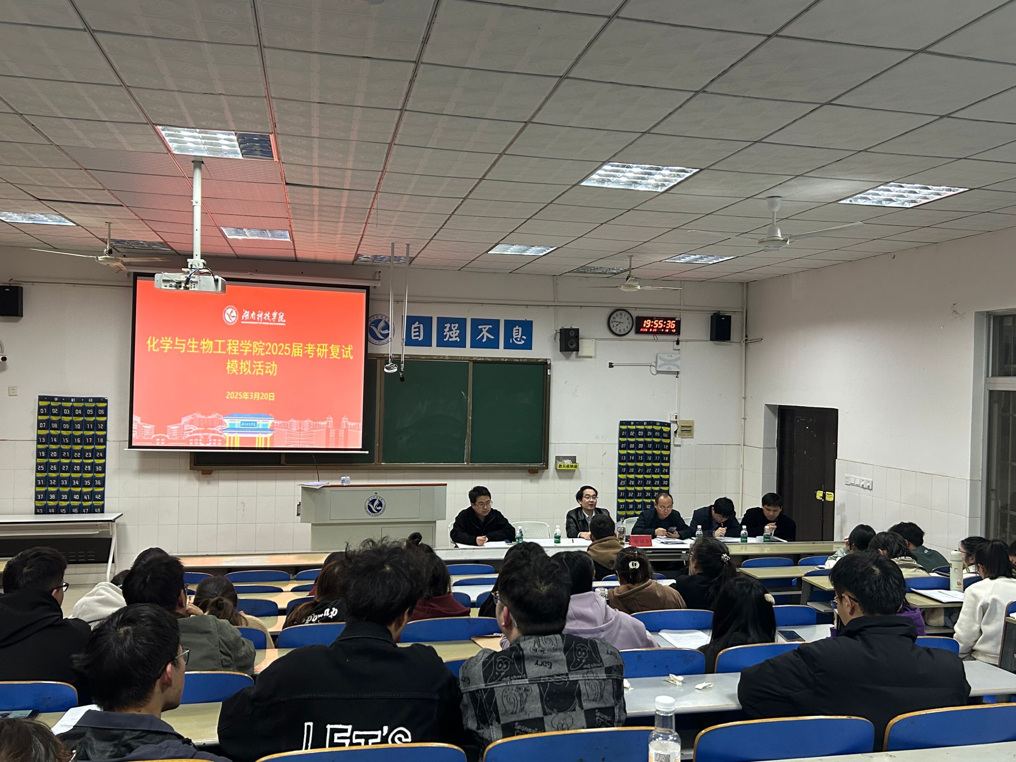(本网讯 邓盎妍) 为精准提升2025届考研学子的复试竞争力,帮助考研学子提前熟悉复试流程、掌握应试技巧、增强临场应变能力,化学与生物工程学院于3月20日晚7点在逸夫楼424教室举办考研复试模拟活动。模拟考官由学院院长覃佐东、副院长肖新生、副院长唐武飞,谢龙勇博士和李百元博士组成,2025届考研过线学生参加本次活动。