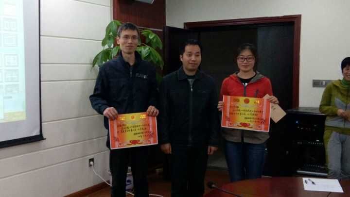 颁奖仪式上,院长何福林、党总支书记赵雨云和赛事裁判陈铁壁为获奖者颁发了奖状和奖金,并合影。