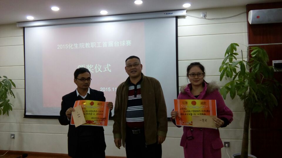 本网讯(通讯员 邓平洋)11月3日,我院教职工第一届台球赛顺利结束,在逸夫楼320会议室举行了简单的颁奖仪式。