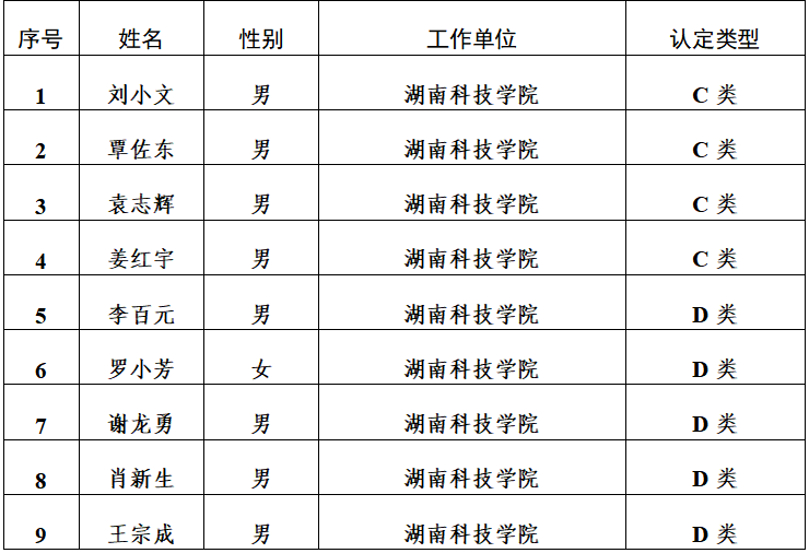 (本网讯 刘乐)根据《中共永州市委办公室印发〈关于奋力打造新时代潇湘人才高地推动永州高质量发展的36条措施〉的通知》《永州市高层次人才分类认定实施办法(试行)》等文件要求,经个人申请、主管部门审核和评审委员会评审50名申报人员符合永州市第一批次高层次人才认定条件,我院共9名教师入选,其中4名教师被评为省级领军人才( C类),5名教师入选永州市高层次人才(D类)。