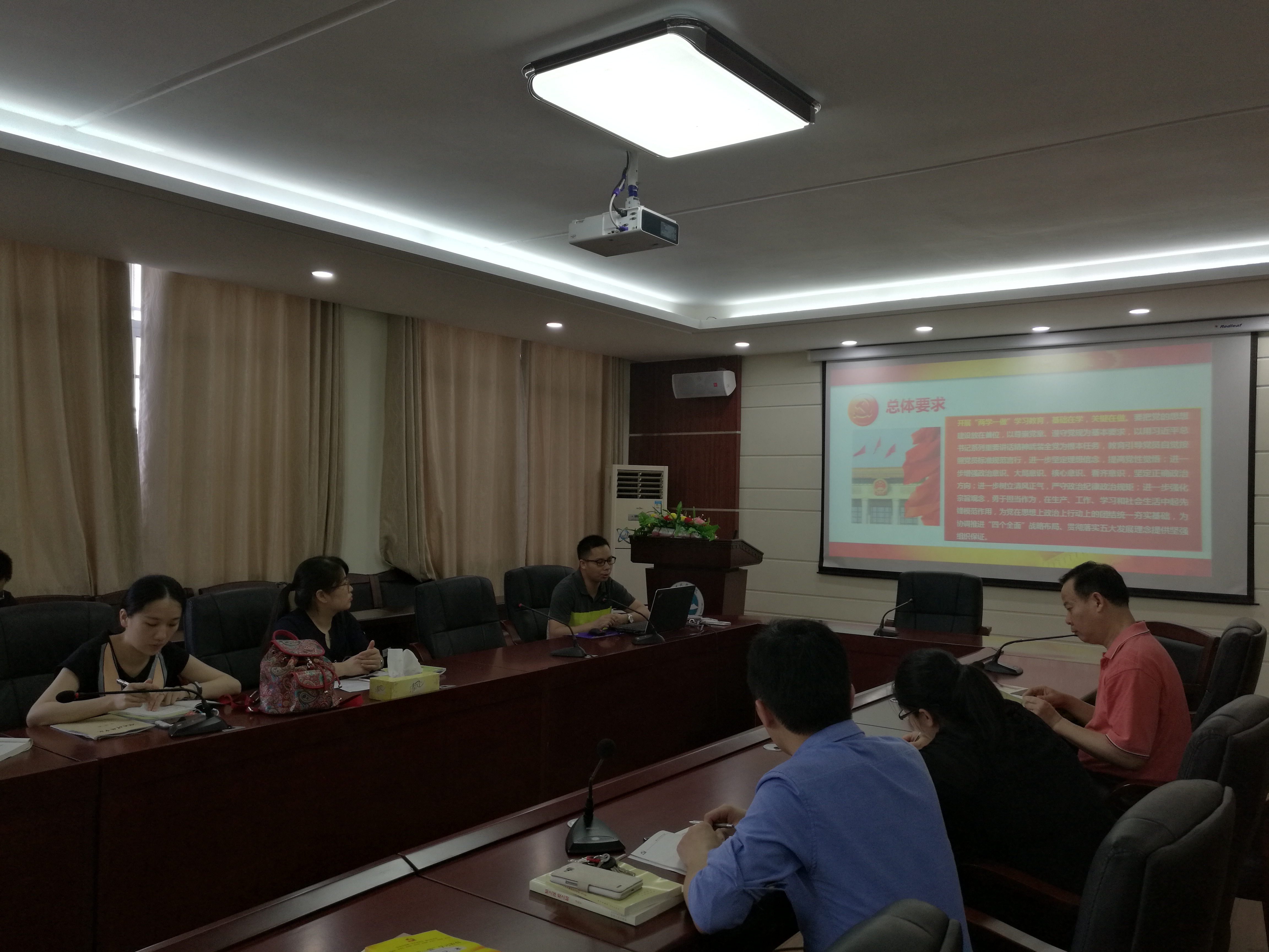 5月30日下午,生管教师党支部书记刘小文在逸夫楼320会议室围绕“两学一做”为支部全体党员上党课,党课主要讲解为什么要开展“两学一做”,总体的要求,学习教育的内容,主要措施以及应该如何将“两学一做”落到实处。