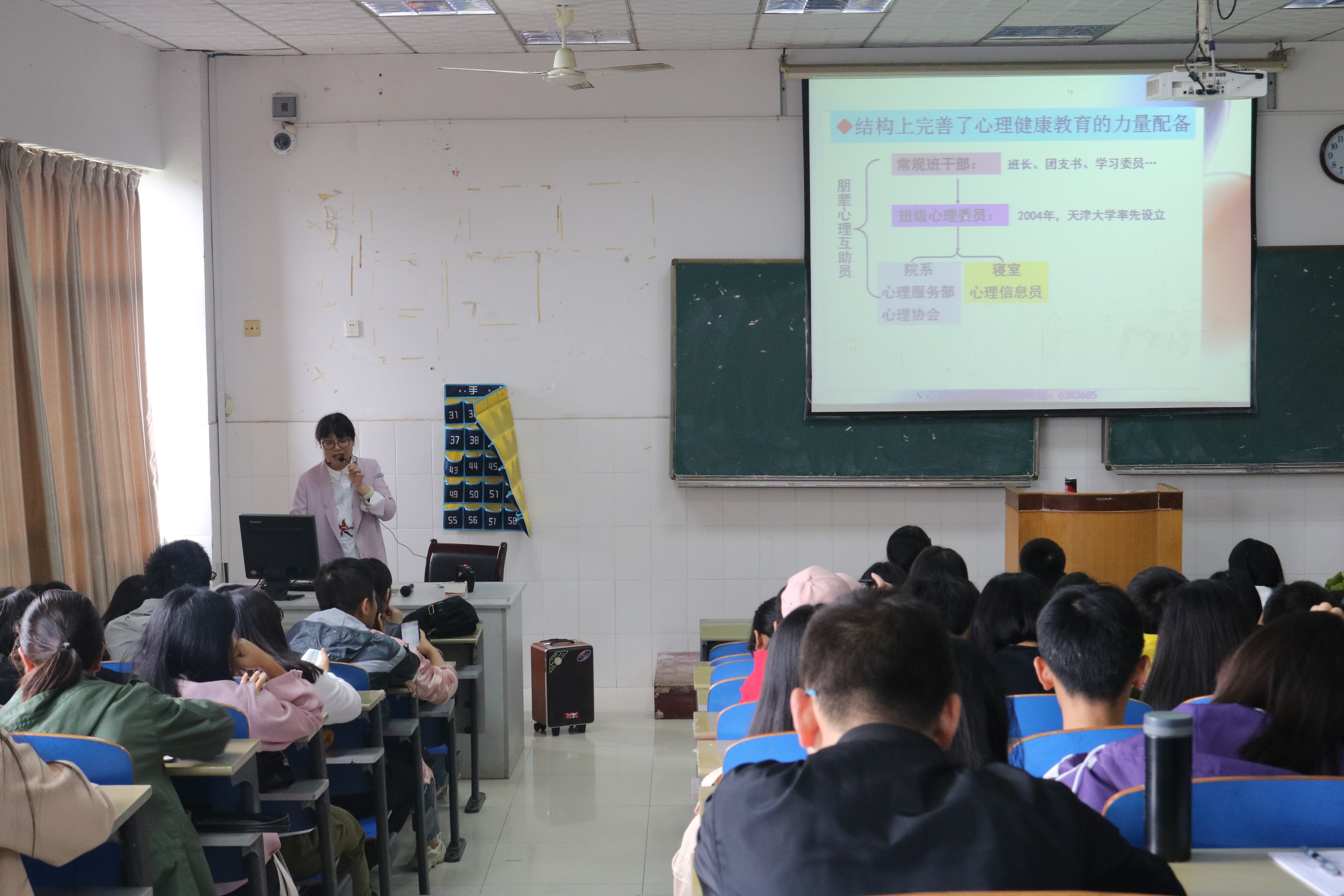 整个培训持续近一个半小时。参与此次培训的同学在采访中说:“这次培训非常有意义,我可以利用学到的这些知识,去帮助同学们。当我发现有些同学具有心理问题的时候,我也不至于什么都不知道,相反,我可以正确的去劝解她,开导她,帮助她走出阴霾。”