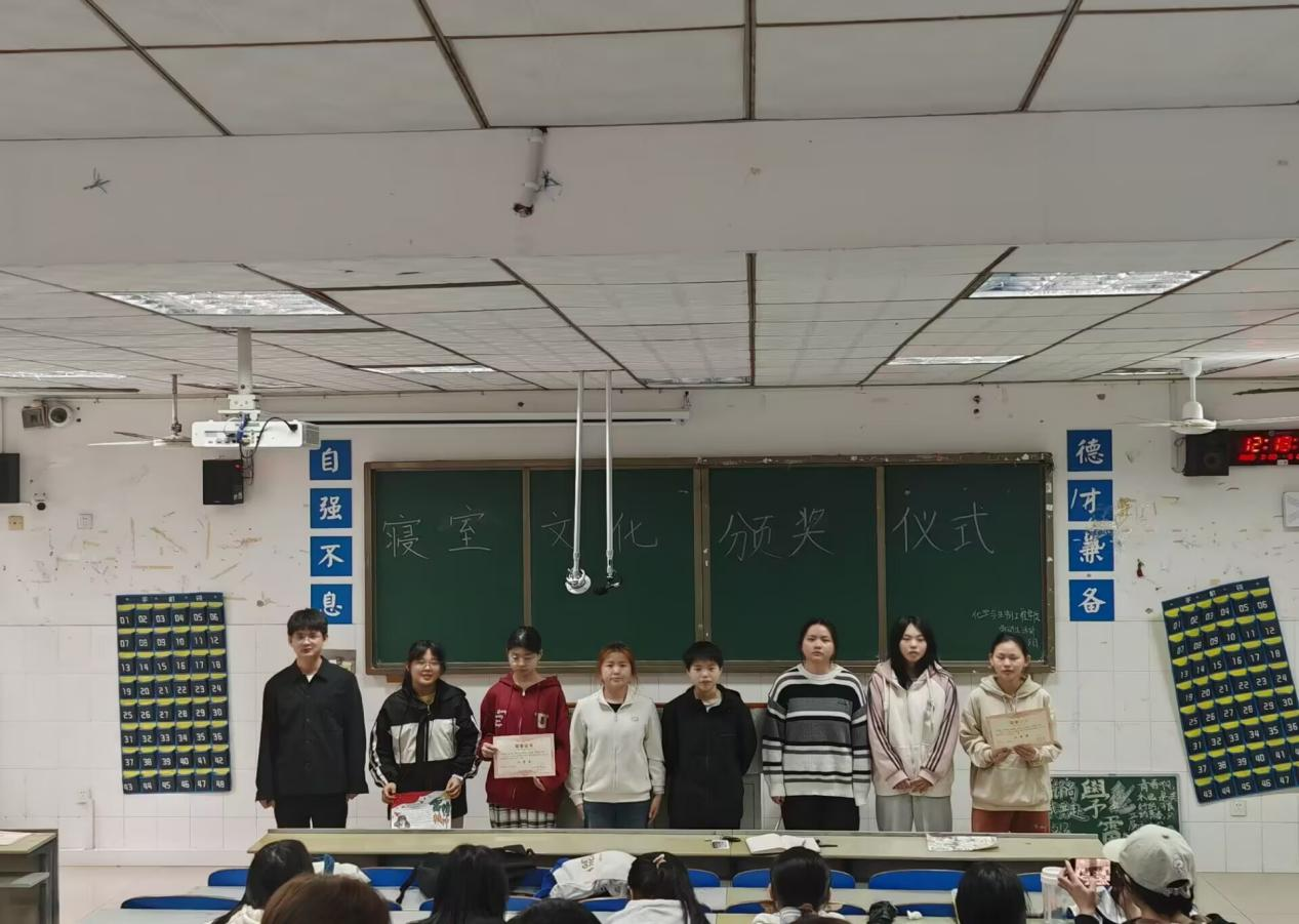 本参赛寝室以宿舍为创作阵地,精心完成书画板报的构思与制作。作品评选环节采用线上线下相结合形式开展,由我院学生公寓指导老师张自强,学生会主席、各部门部长及劳动生活部成员共同参与评审。3月28日,由张自强老师主持颁奖仪式,并为获奖人员颁发荣誉证书和奖品。