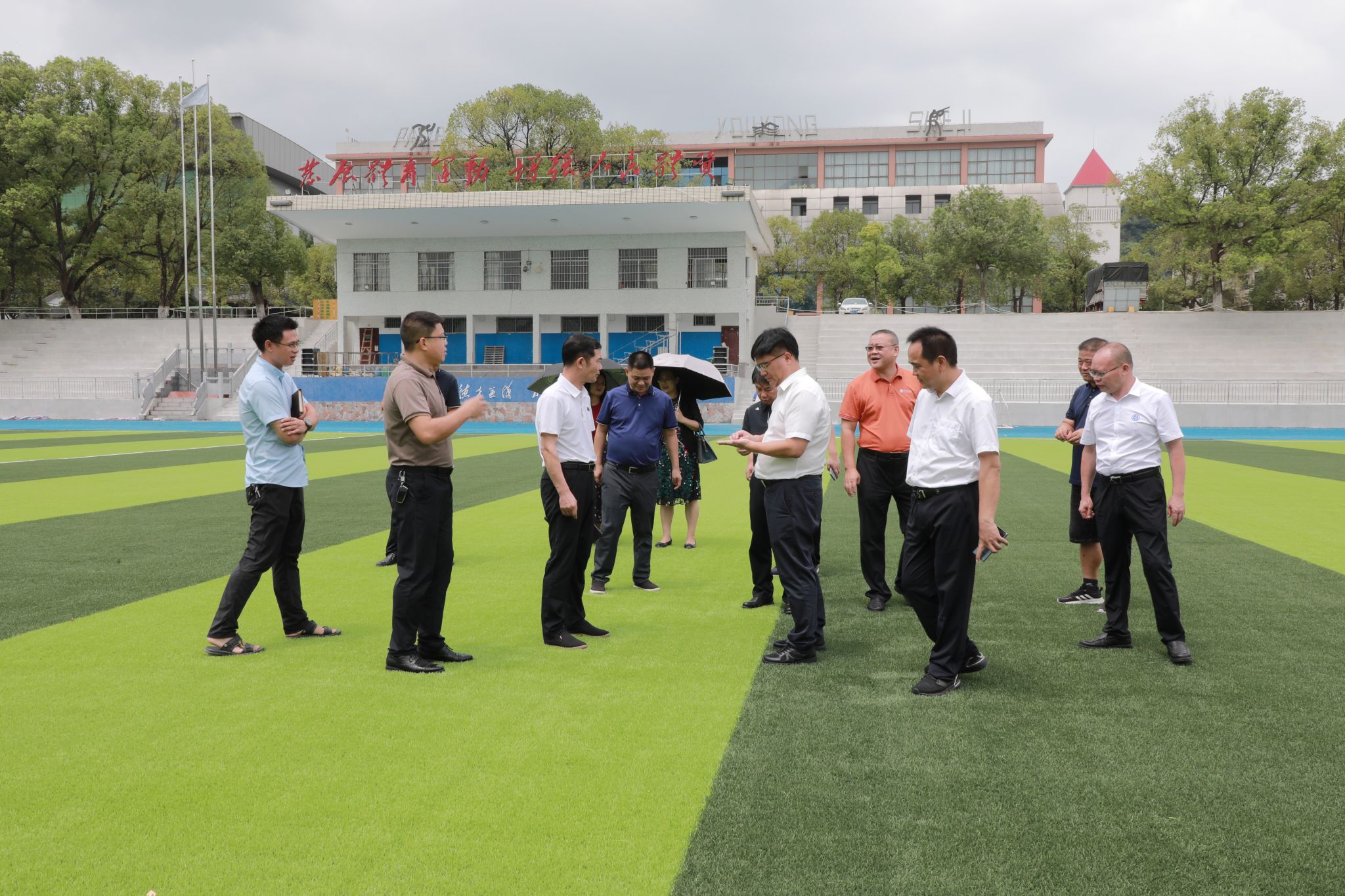 本网讯 8月14日,党委书记李钢、校长黄创霞,校领导李常健、吴小林、何福林、郑银芳、何海前往田径场、宿舍等地检查指导校园管理服务和提质改造工作。