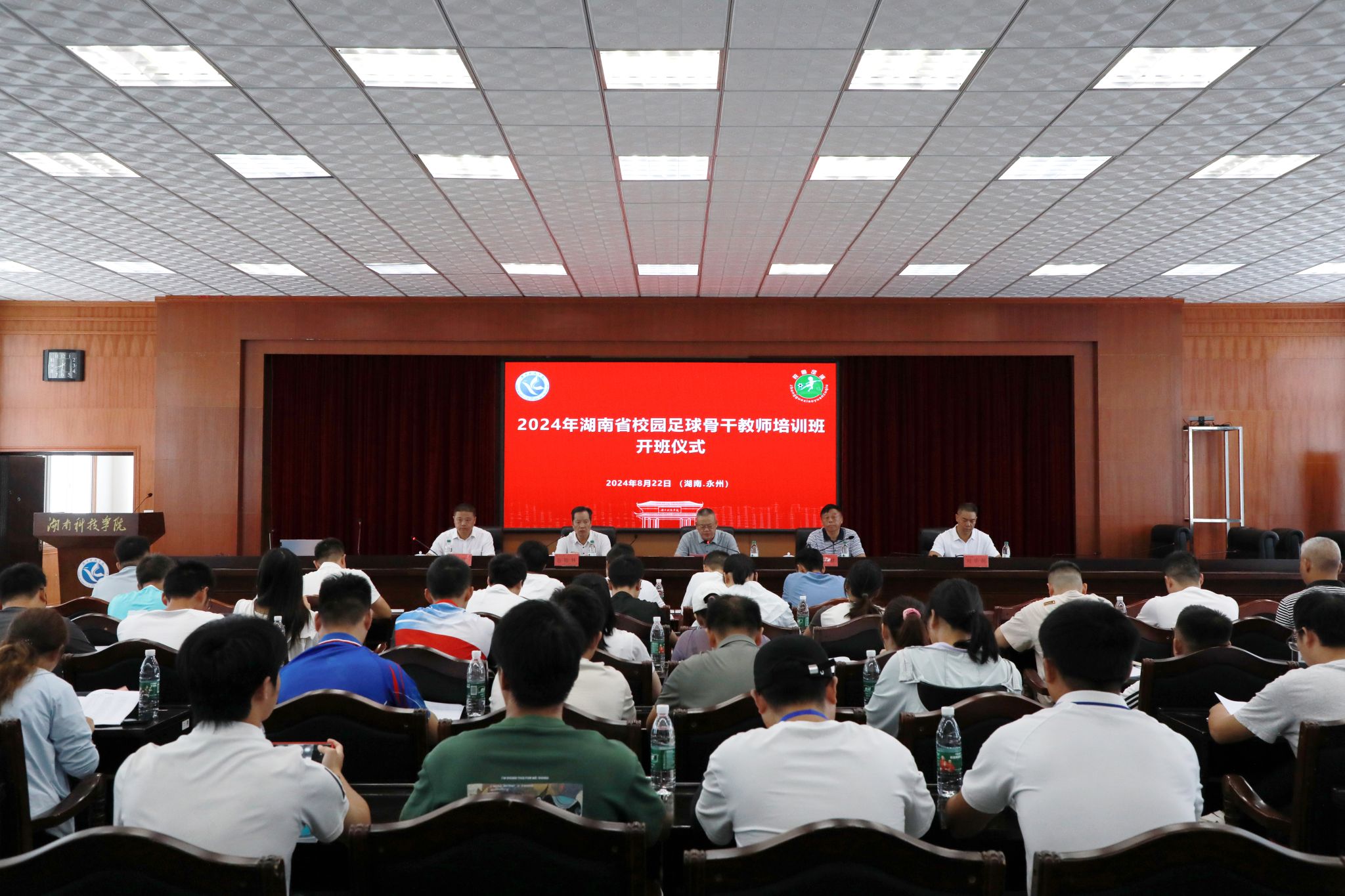 本网讯(通讯员 刘华剑)8月22日,由湖南省教育厅体育卫生与艺术教育处主办的2024年湖南省校园足球骨干教师培训班在bat365官网顺利开班。党委委员、副校长何福林,湖南省青少年校园足球工作领导小组办公室计划主管李泽群、竞赛主管谷贻林,体育学院院长谢欢、党总支副书记刘华剑等出席仪式,来自永州市和湘西土家族苗族自治州的48名学员参加培训。