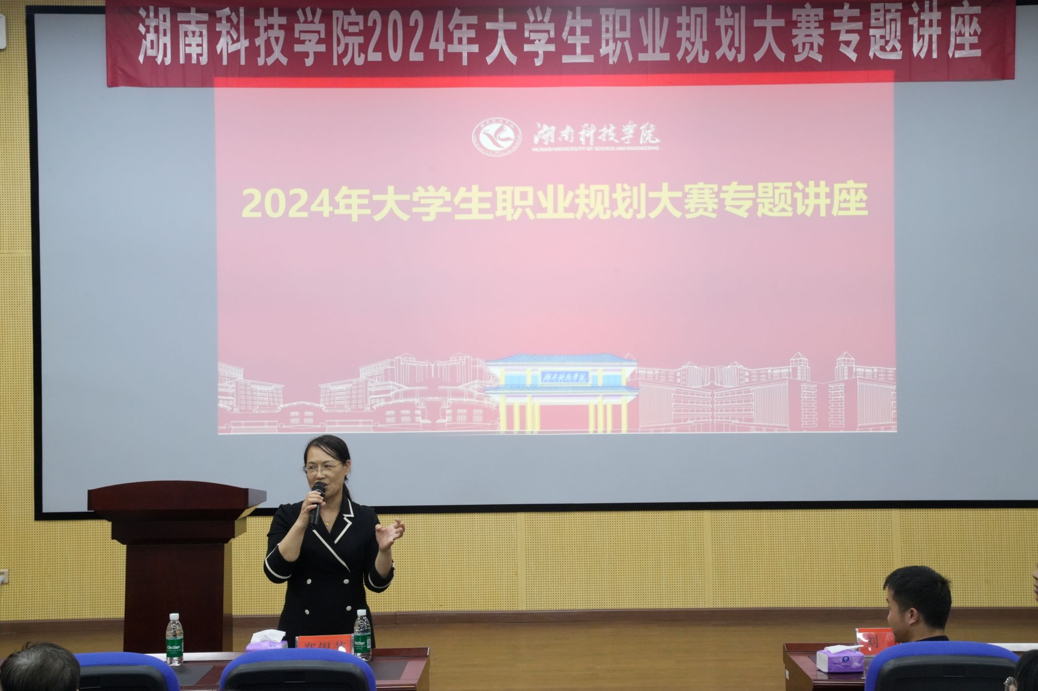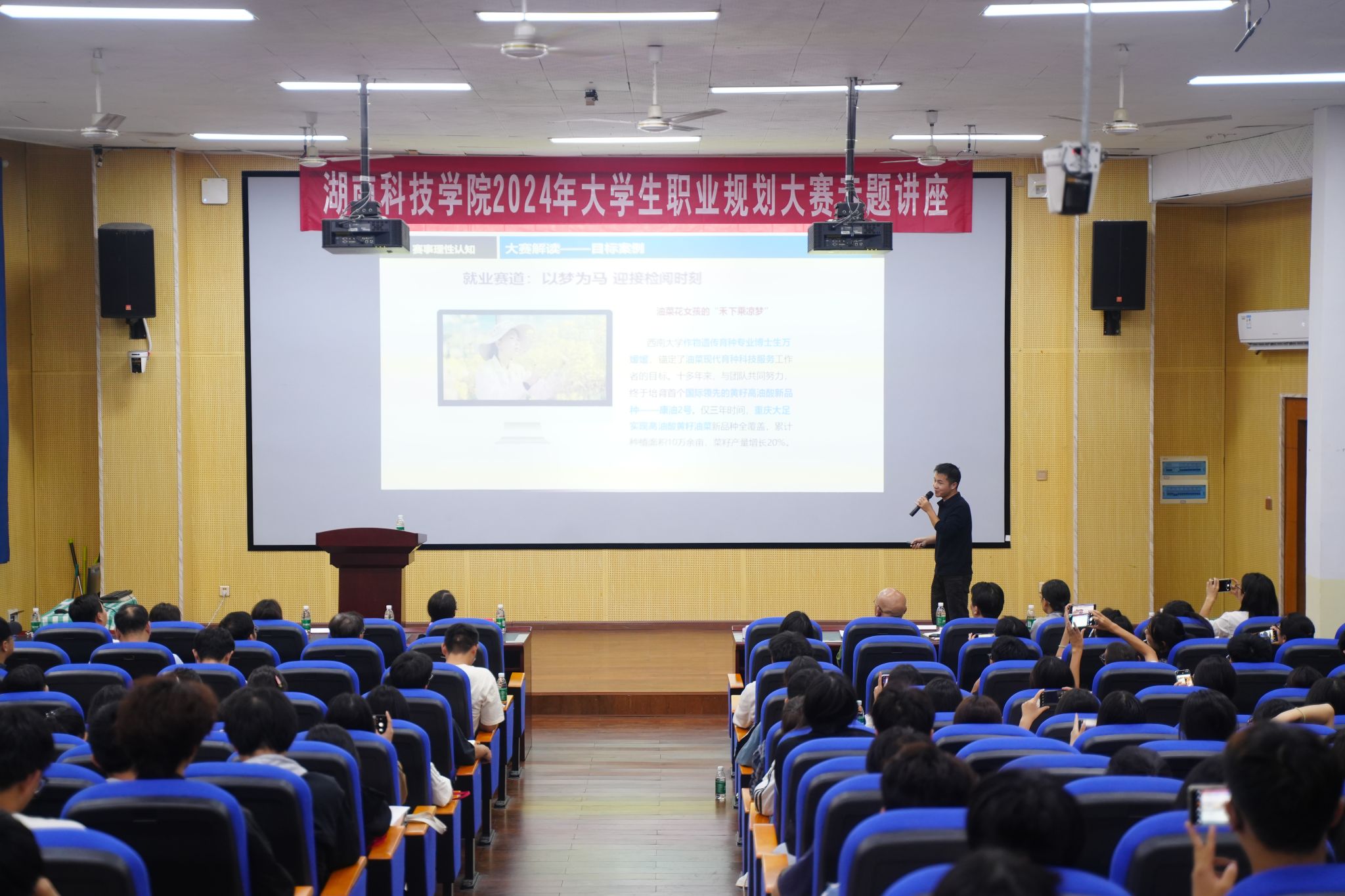 各教学学院党总支书记、党总支副书记、赛事专干、指导老师代表、参赛选手及招生就业与创新创业指导处相关工作人员近300人参加讲座。
