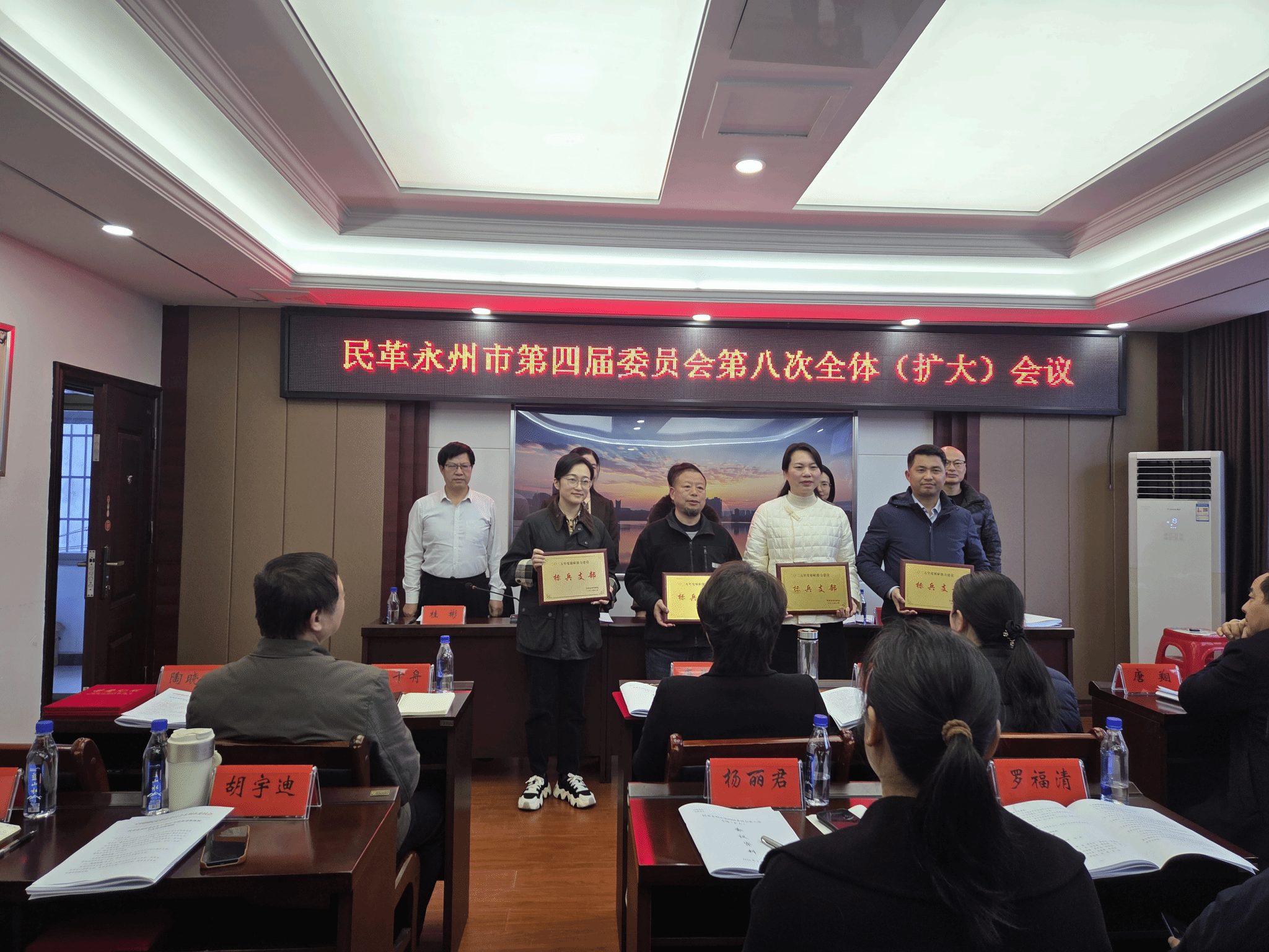 本网讯(通讯员 方芳)3月19日,民革永州市委会四届八次全体(扩大)会议在冷水滩召开。会议对2025年度履职能力建设先进集体和个人进行了表彰,bat365官网民革支部荣获“标兵支部”荣誉称号,2名党员被评为“优秀民革党员”。