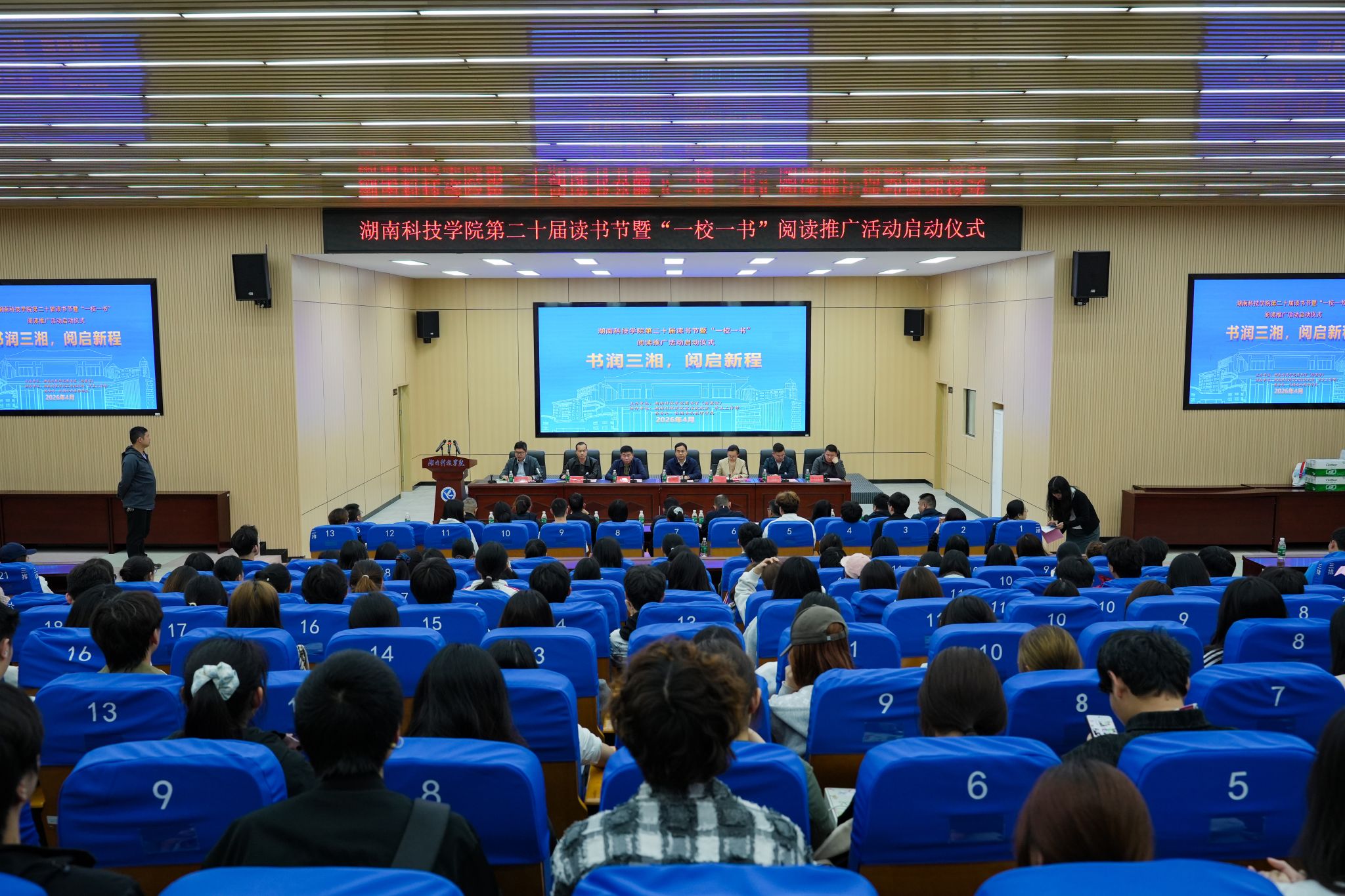 学校宣传统战部、教务处、学生工作部、校团委、图书馆(档案馆)等部门负责人,各二级学院党总支副书记、辅导员,各学院学生代表共计500余人参加活动。
