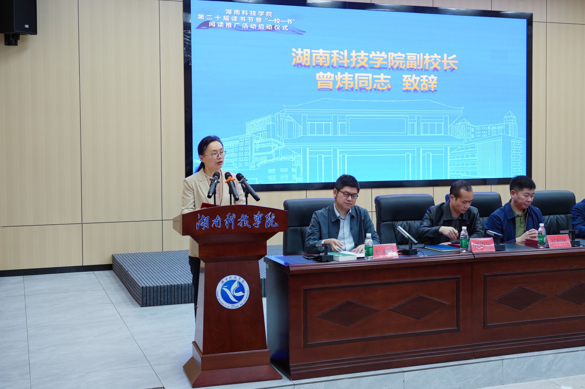 本网讯(记者 彭晥君 盖明皓 谷利梅)4月21日,bat365官网举行第二十届读书节暨“一校一书”阅读推广活动启动仪式。校党委书记黄创霞,副校长曾炜出席活动。