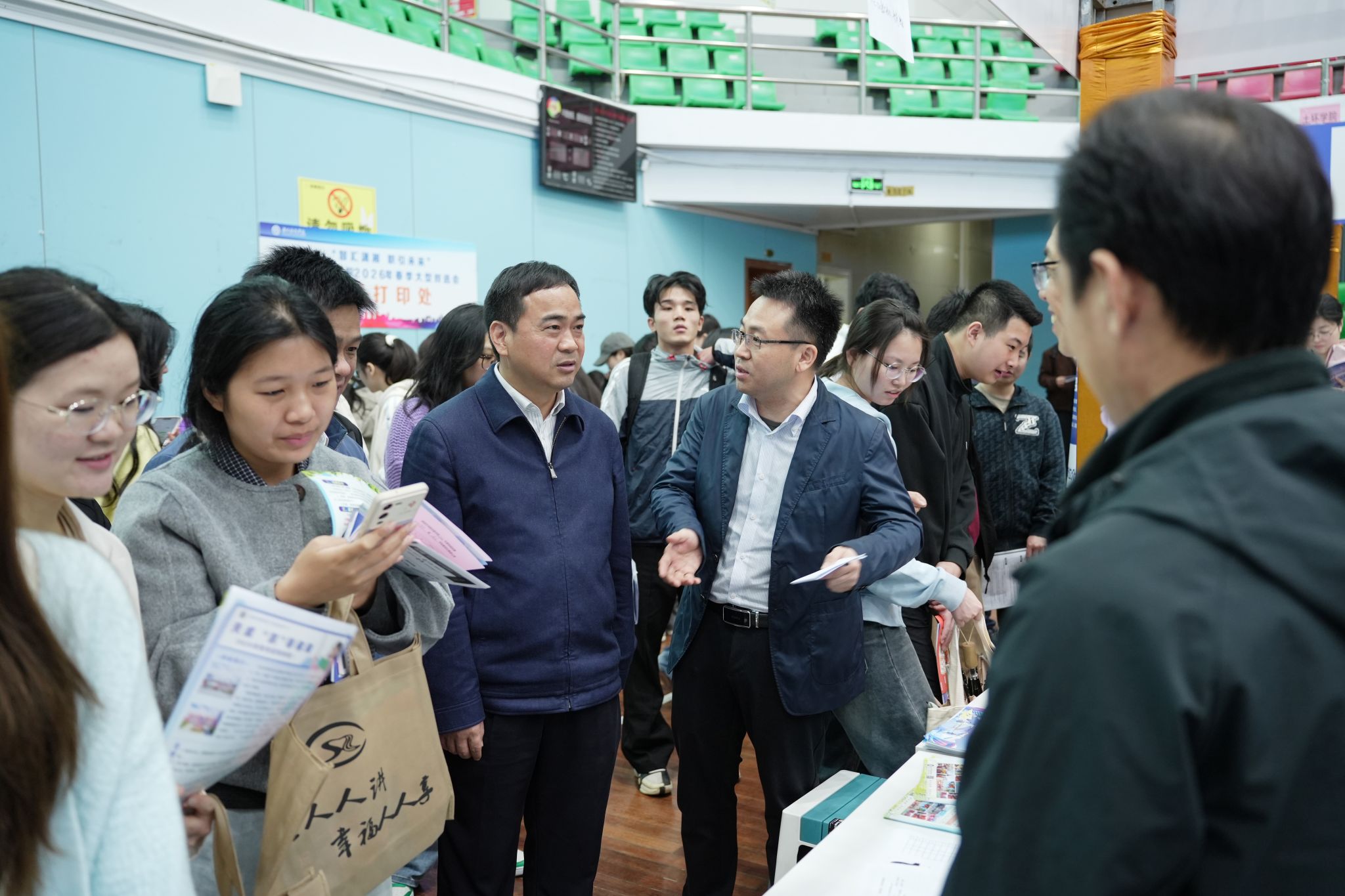 本网讯(记者 蔡汝佳 谷利梅 摄影 谢志豪)4月22日上午,学校2026年春季大型双选会顺利举行,校党委书记黄创霞出席活动,各教学学院相关负责人、2026届毕业生辅导员参加活动,吸引2800余名毕业生入场求职,现场接收简历1791份。