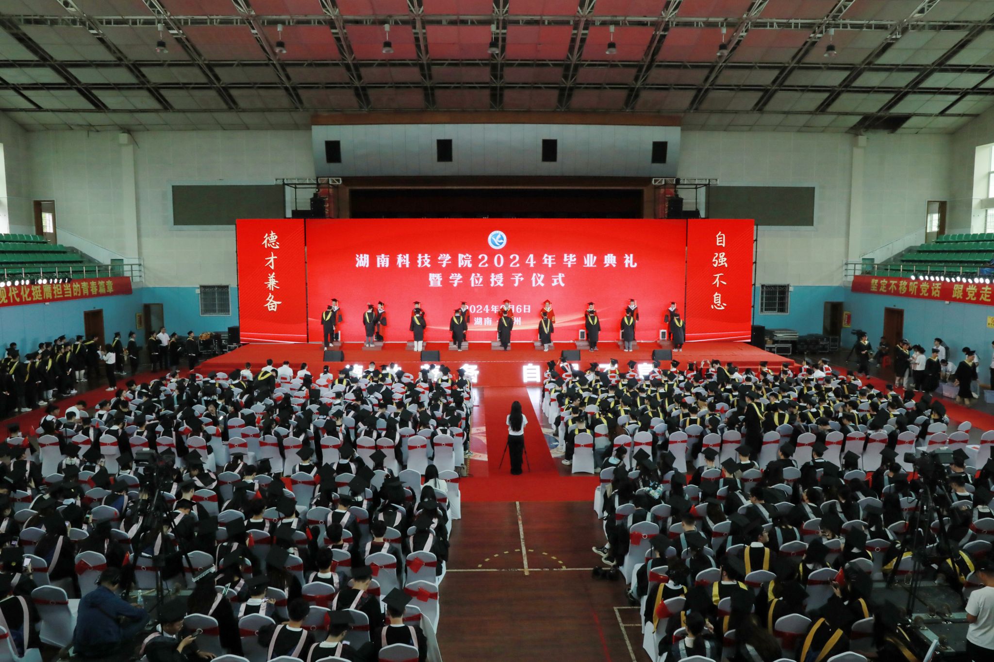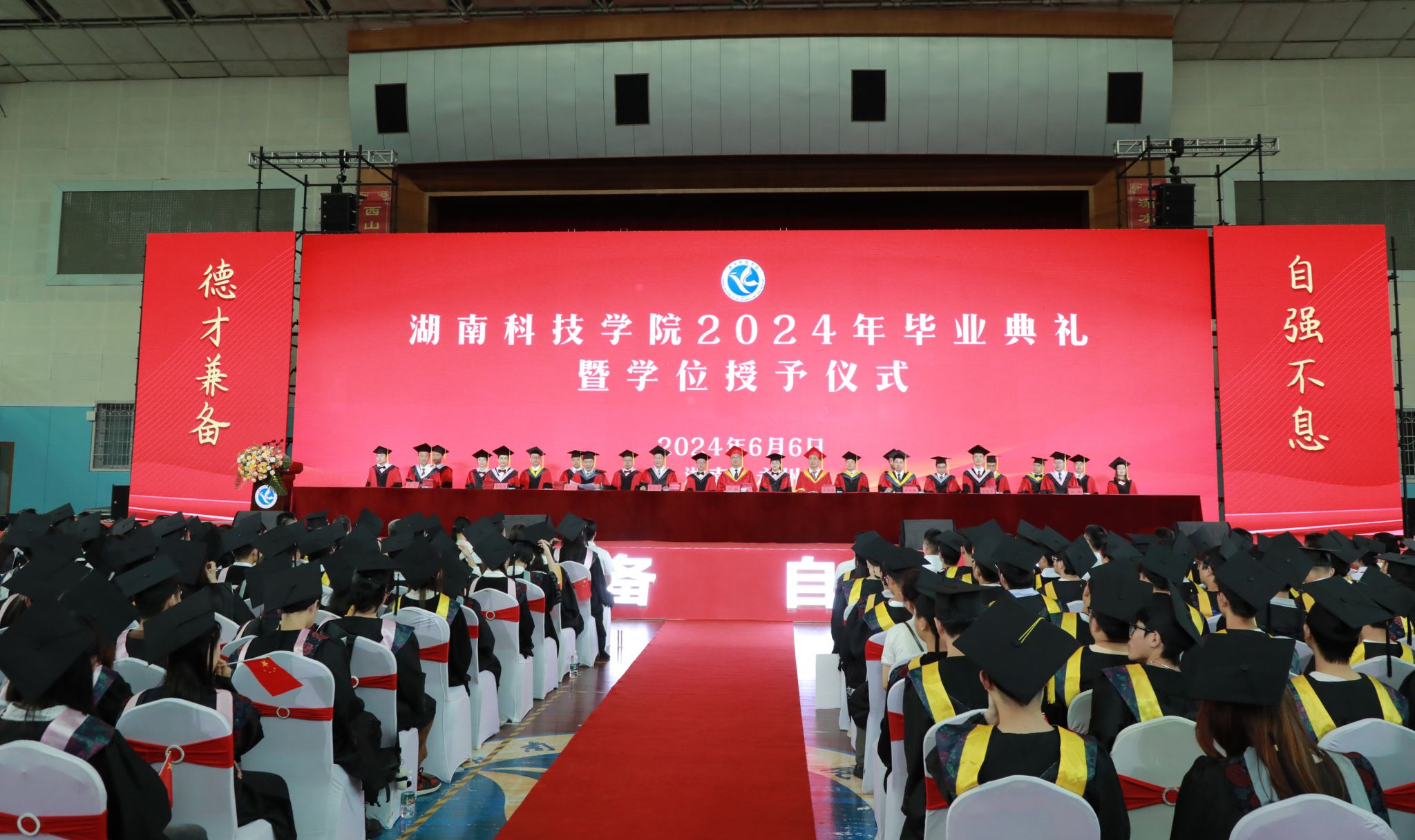 本网讯(记者 赵丹 向薛峰 摄影 谢志豪)岁序常易,华章日新。6月6日,学校2024年毕业典礼暨学位授予仪式在体育馆隆重举行,2024届毕业生将从母校出发,扬帆远航,迈向人生新征程。