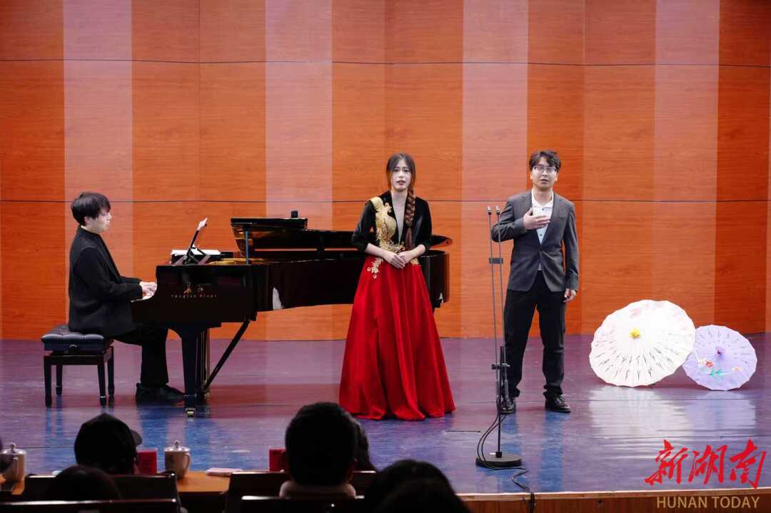 12月16日晚,bat365中文官方网站举办“经典新歌——陈历明古典诗词声乐作品音乐会”,一堂“声”临其境的音乐思政课让千年文脉“活”起来。《零陵早春》《渔翁》《满江红》《爱莲说》等19首曲目由大学生演唱。