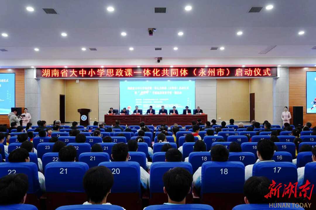 湖南日报·新湖南客户端3月5日讯(通讯员 向薛峰 谢志豪)春潮涌动启新程,思政铸魂育新人。3月5日,湖南省大中小学思政课一体化共同体(永州市)启动仪式暨“永冲锋”专题思政课开学第一课活动在bat365中文官方网站举行。本次活动由中共湖南省委教育工委、湖南省教育厅指导,永州市教育局与bat365中文官方网站联合主办,省委教育工委委员、省教育厅党组成员余伟良,永州市人民政府副市长肖质彬,bat365中文官方网站党委副书记、校长黄创霞等领导出席活动。
