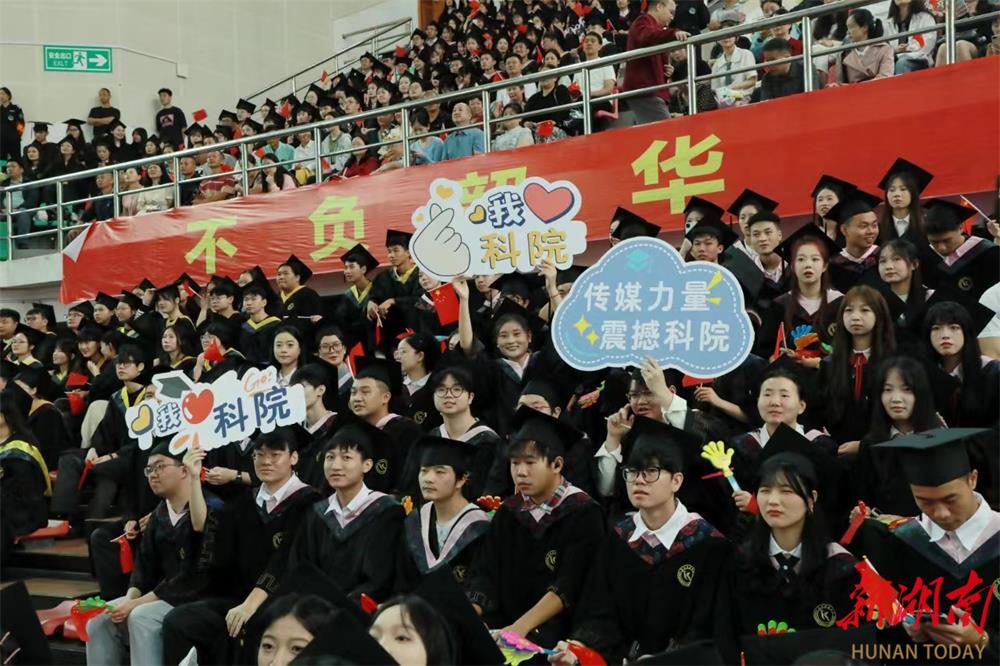 毕业典礼前,全体师生唱响青春的旋律,《遇见·湘科院》等主题歌曲和毕业视频短片则带领大家回顾了毕业生的大学四年,表达了同学们对未来人生的向往与期待。