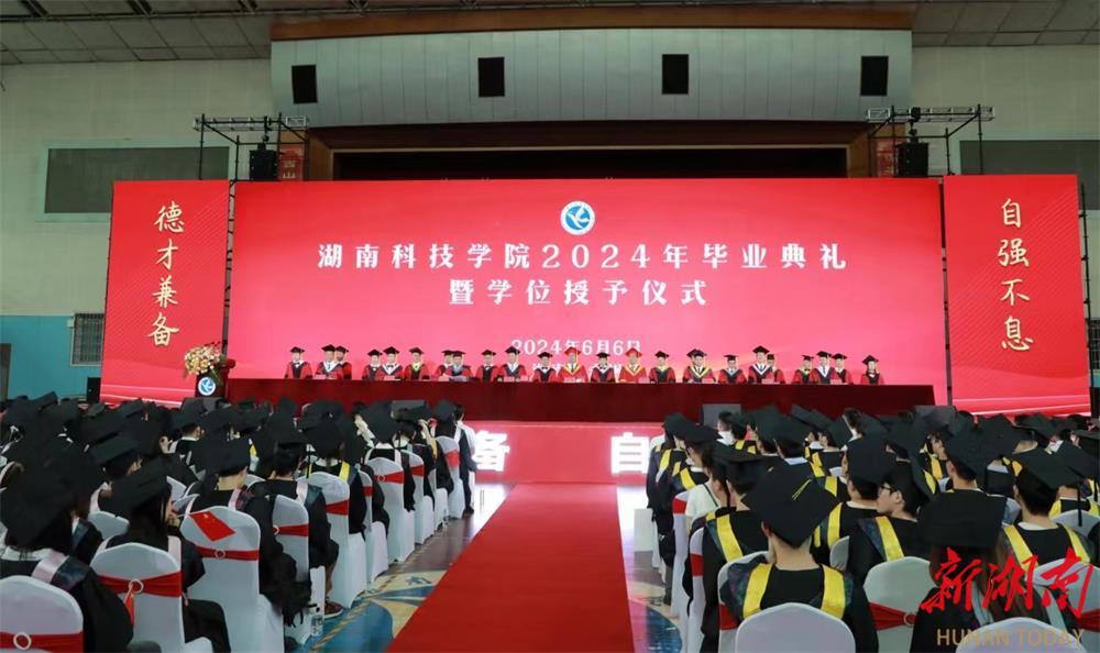 湖南日报·新湖南客户端6月6日讯(通讯员 赵丹 向薛峰)岁序常易,华章日新。6月6日,bat365中文官方网站2024年毕业典礼暨学位授予仪式在体育馆隆重举行,2024届毕业生将从学校出发,扬帆远航,迈向人生新征程。