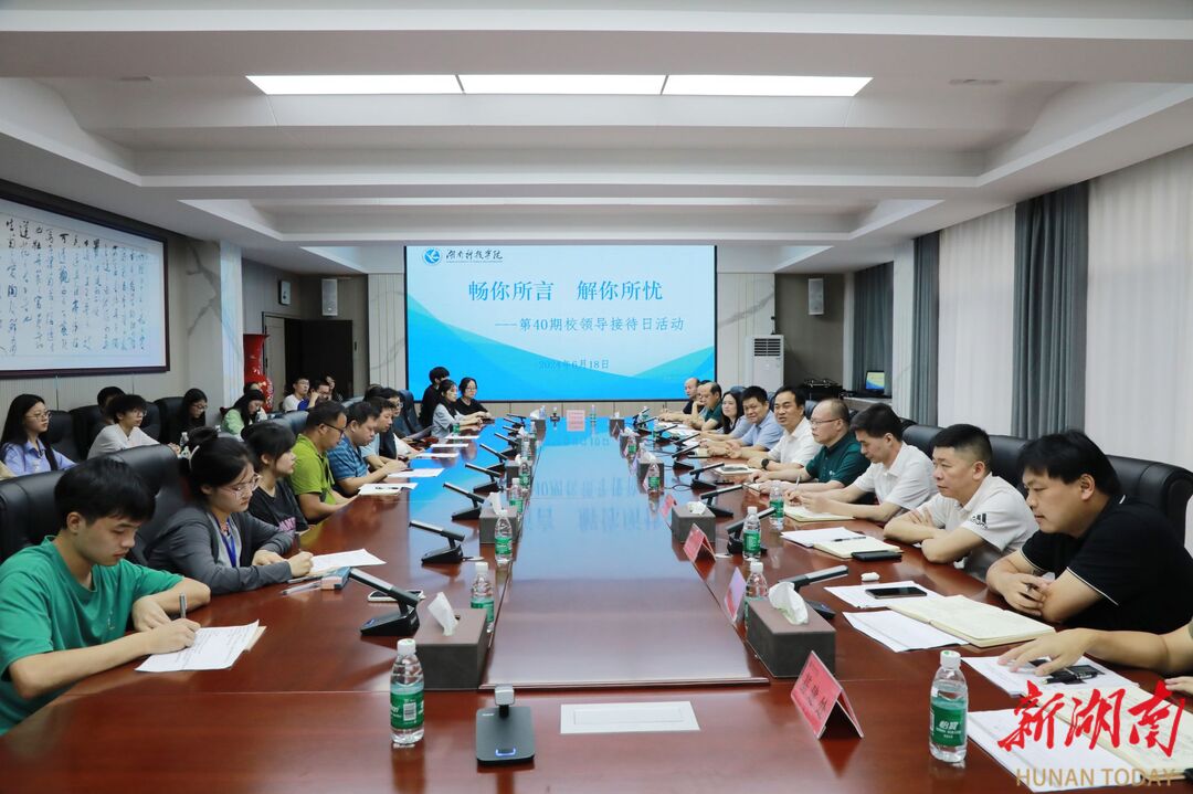 湖南日报·新湖南客户端6月20日讯(通讯员 赵丹)“学校能否开展更多的跨学科活动,进一步优化选课方案和评价体系?”“建议学校进一步加强基础设施建设,改进陈旧教学设备”6月18日晚,bat365中文官方网站举行第40期校领导接待日活动,校长黄创霞,党委委员、副校长何海与来自全校各个学院的教师、学生代表亲切交流,围绕师生关注的校园环境、教育教学、后勤服务、校园安全等问题展开讨论,共话发展。活动由学校党政办公室主任吴春江主持。