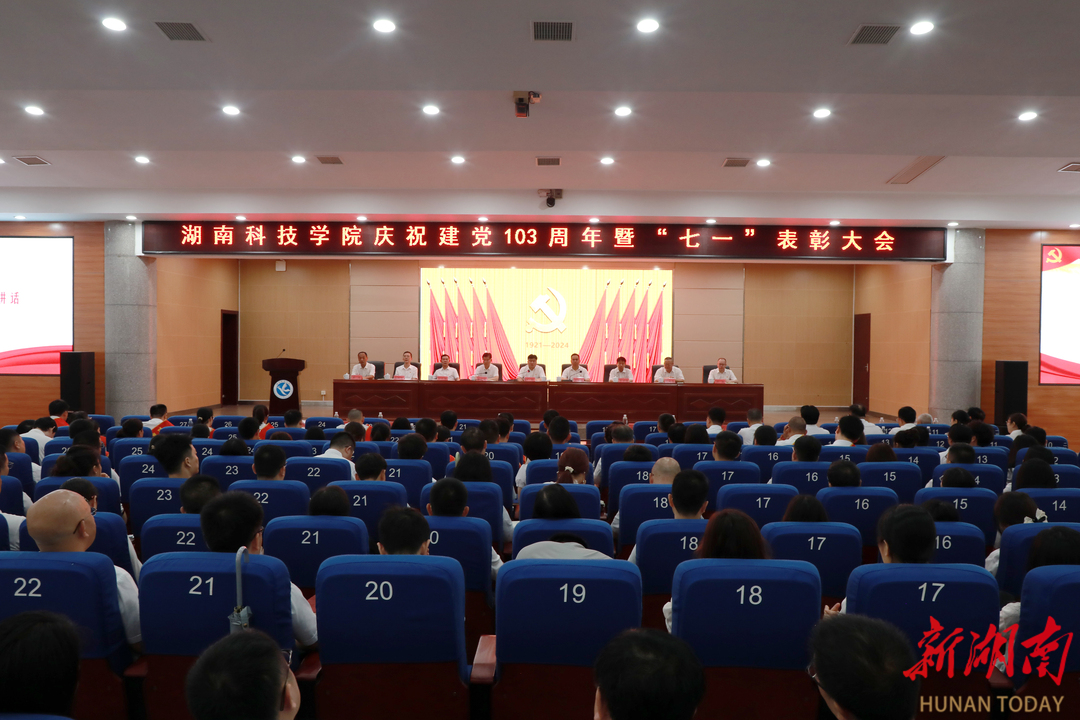 湖南日报·新湖南客户端7月1日讯(通讯员 向薛峰 谢志豪)7月1日,bat365中文官方网站在潇湘大讲堂举行庆祝中国共产党成立103周年暨“七一”表彰大会。该校党委书记李钢、校长黄创霞,校领导宋宏福、李常健、吴小林、何福林、陈灿军、何海,党委委员、组织部部长杨涛,受表彰对象、党员中层干部和全体党员教师参加会议。会议由黄创霞主持。