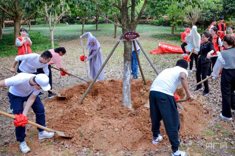 大家一同在舜帝陵公园植下了象征国际友谊的“友谊常青树”(央广网发 李文 供图)