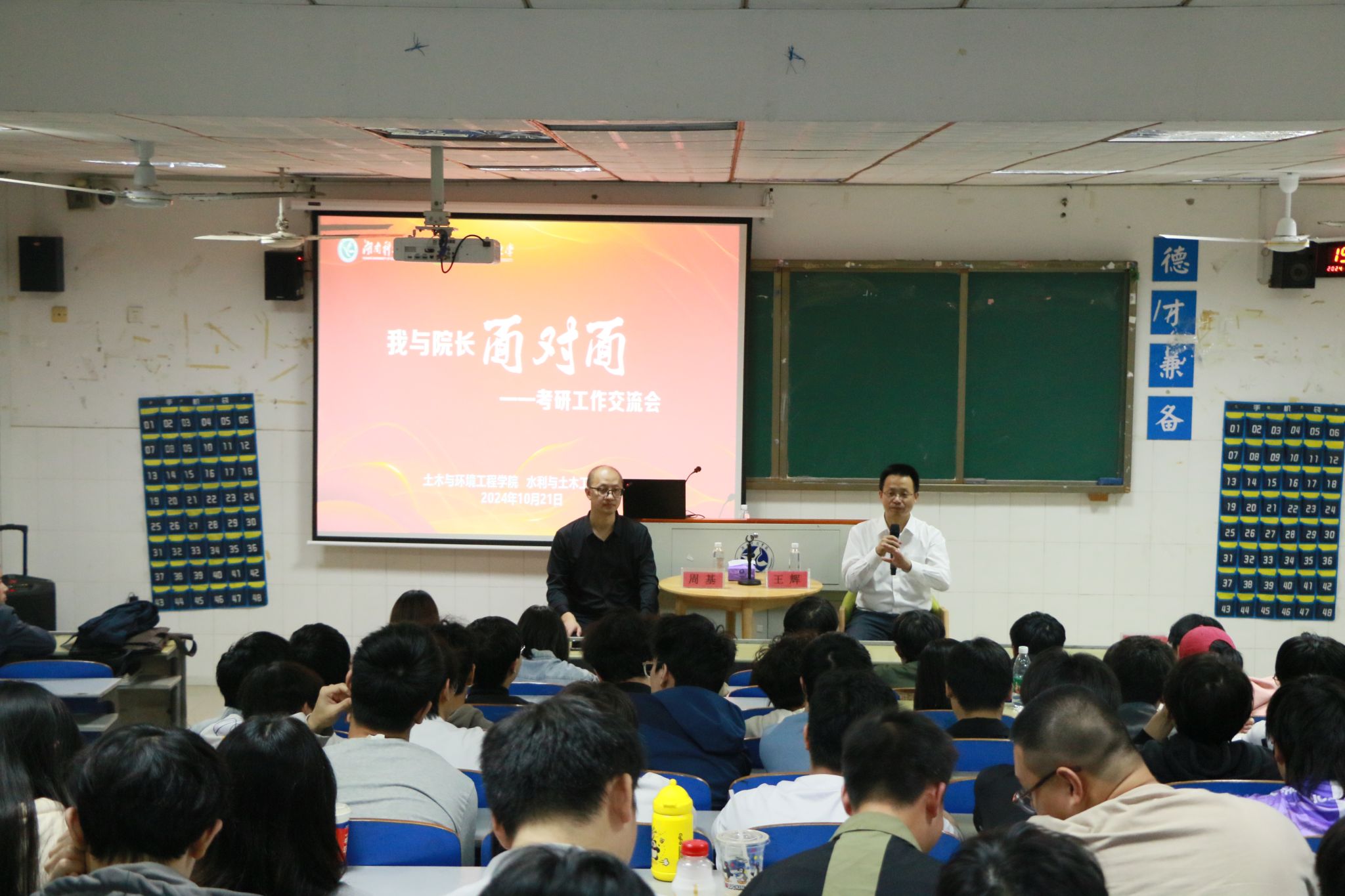本网讯(通讯员 罗琅贵 麦合丽娅)10月21日,土木与环境工程学院于逸夫楼218教室召开2022级学生考研工作交流会。会议邀请了土木与环境工程学院院长周基和湖南农业大学水利与土木工程学院院长王辉作为主讲嘉宾,活动由土木与环境工程学院副院长胡佳星主持。