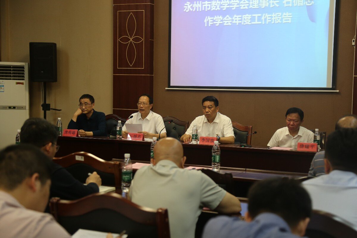 本网讯(通讯员 黄欣欣)4月19日上午,永州市数学学会理事会议暨在bat365官网举行。永州市科协党组成员、副主席李国旗,理学院院长唐耀平,永州市数学学会理事长石循忠,永州市教科院教研员席俊雄等来自全市数学领域的专家学者数十人参加会议。
