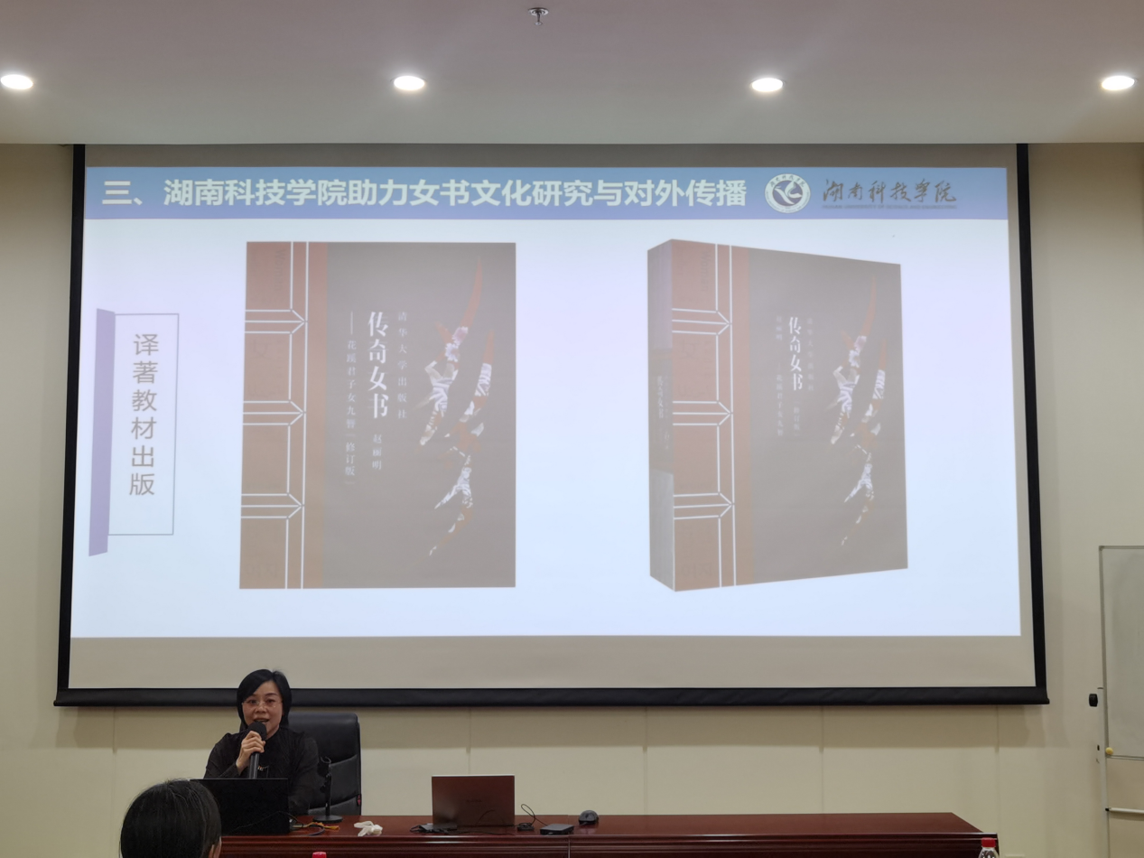 近年来,外国语学院以“湖湘文化对外交流与传播研究基地”为依托,从科学研究、人才培养、服务地方等方面助力湖湘文化“破圈”“出海”,在女书文化、柳子文化、濂溪文化英译研究与实践方面取得显著成效,通过构建学术翻译团队、开展国际交流合作、创新数字化传播等方式助力湖湘文化对外传播,受到了专家学者、教育主管部门、地方政府等高度评价。