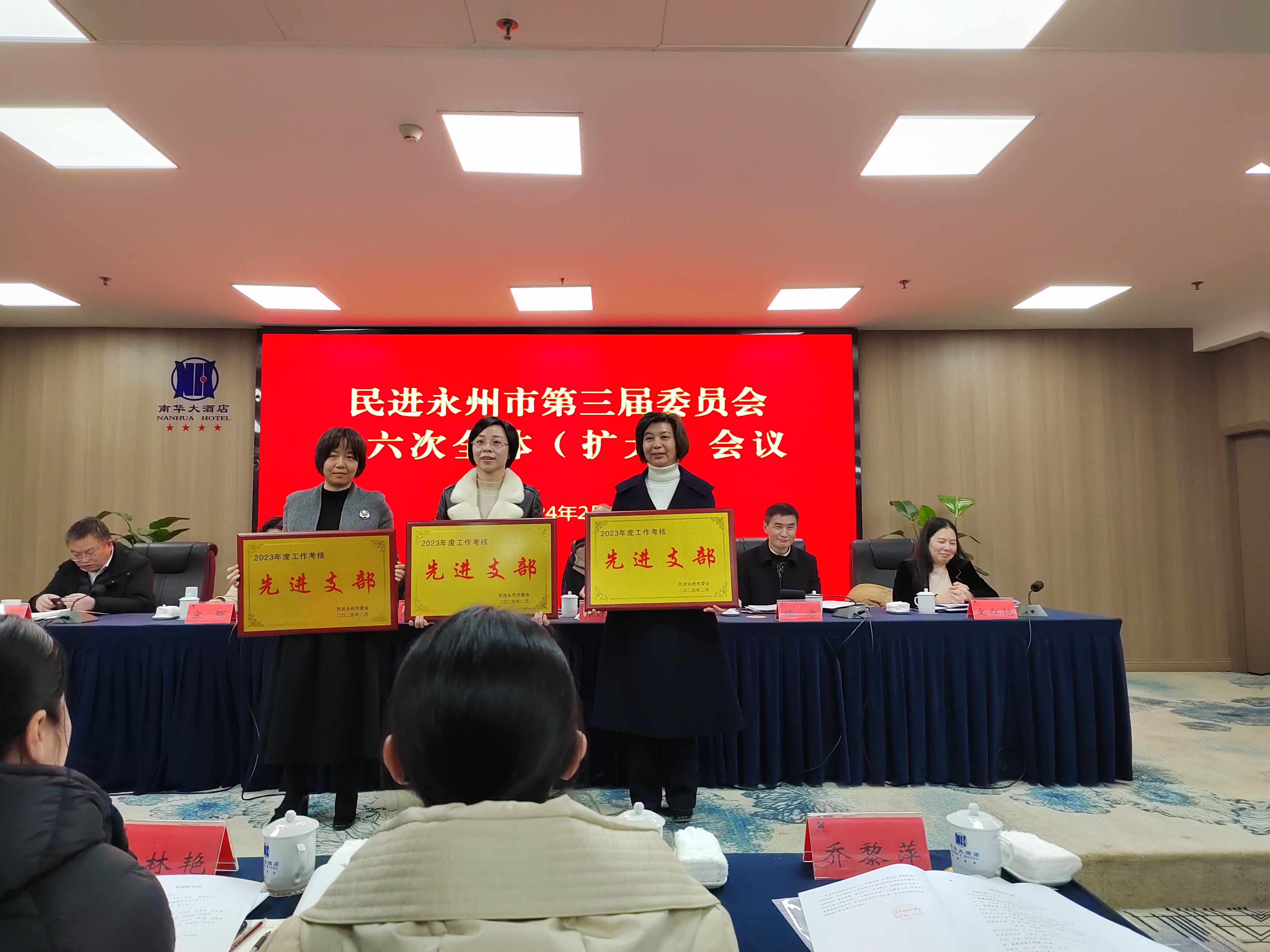 本网讯(通讯员 李焕品)2月29日上午,民进永州市委会三届六次全体(扩大)会议在冷水滩举行。民进bat365中文官方网站支部在2023年度市委会支部考核中位居第一,被评为先进支部。何丽萍被评为社情民意信息工作先进个人,李焕品被评为优秀会务工作者,王豪才、包红光、李小雨、蒋玮玮被评为优秀会员,包红光作为优秀代表发言。