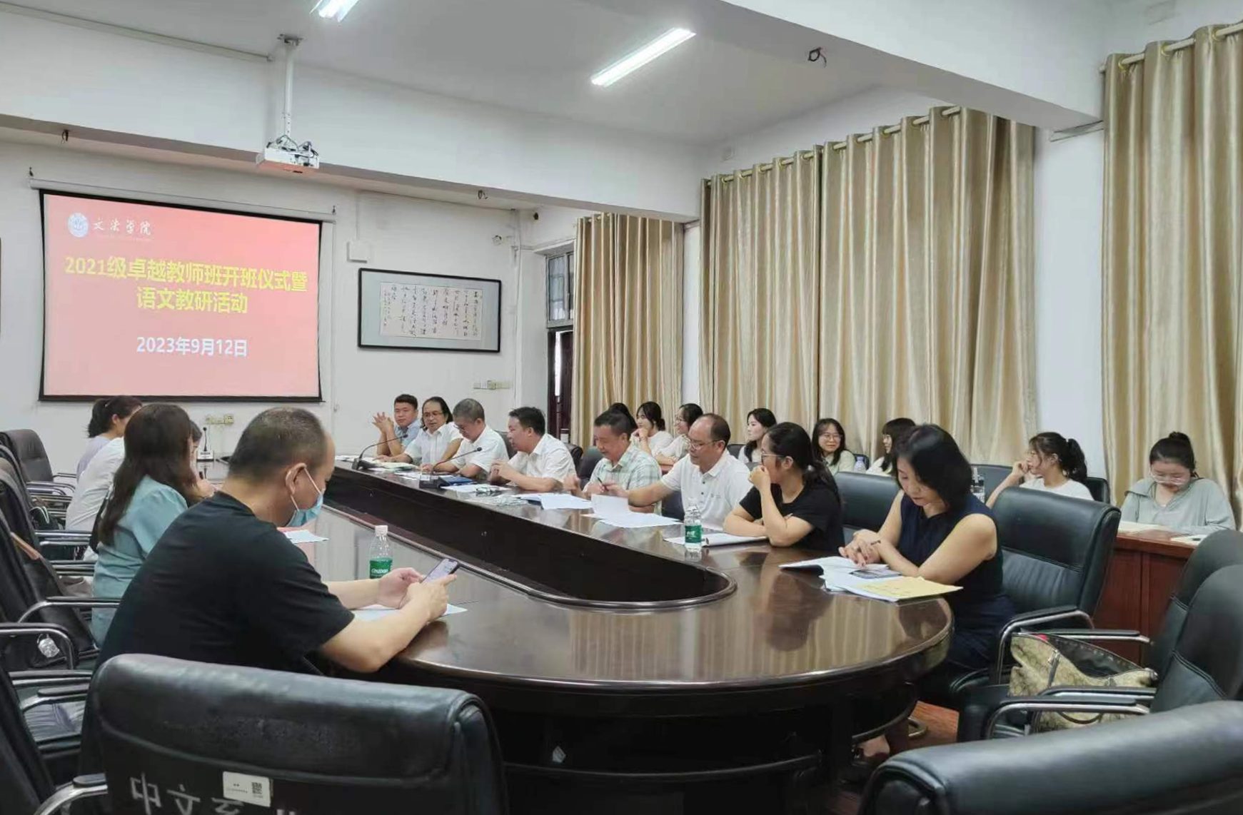 本网讯 9月12日下午,文法学院在明德楼207会议室举行2021级卓越教师班开班仪式暨语文教研活动。活动邀特永州第九中学教务主任陈清渠,语文教研组唐鸟平、韩燕、付亚玲老师来校开展合作交流。文法学院院长谷显明,副院长肖智成、包红光、周玉华,永州语文教育研究中心主任刘忠华等出席活动。