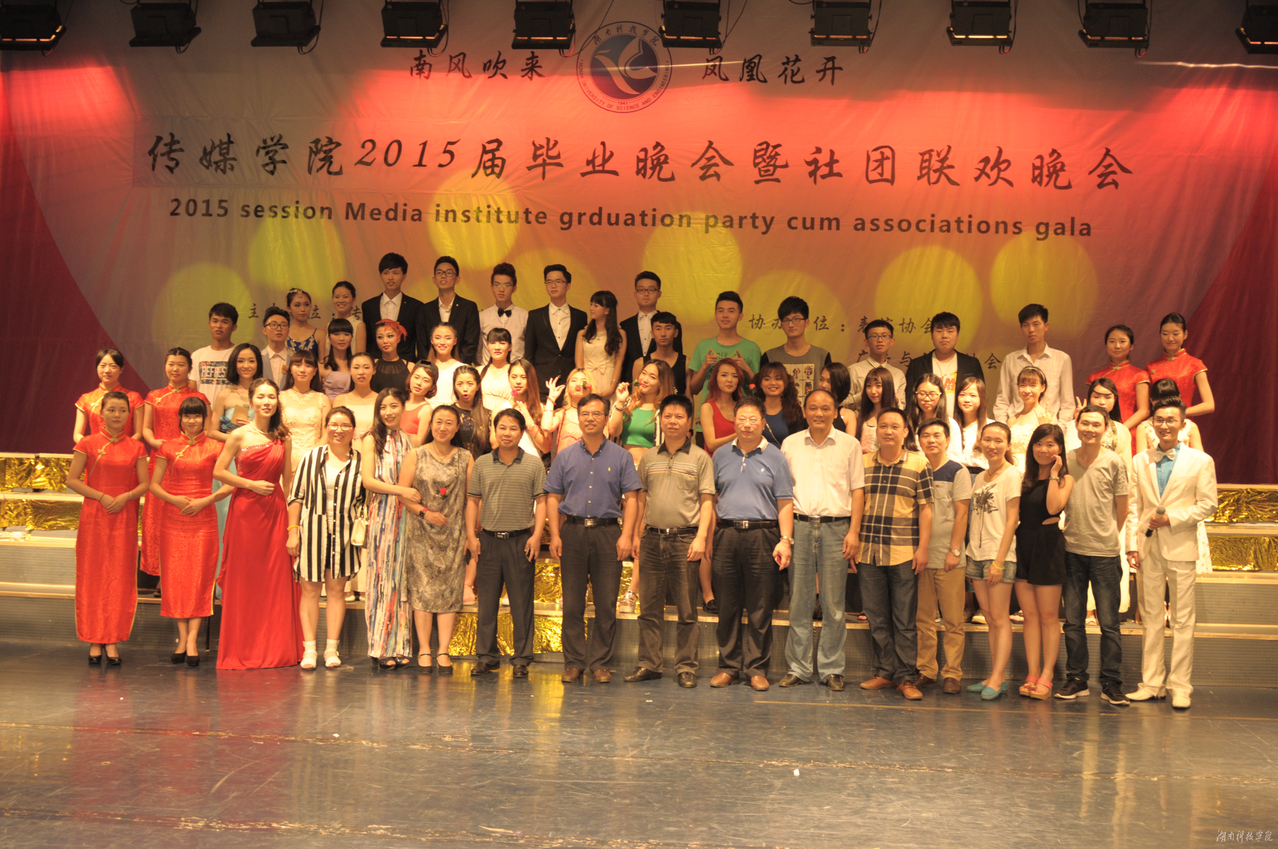 本网讯(记者 牛泽宇)“时光的河入海流,终于我们分头走,凤凰花开的路口,有我最珍惜的朋友”,六月毕业季,离别总有时。6月5日晚上,传媒学院2015届毕业晚会暨社团联欢晚会在音乐厅浓情上演,校党委书记陈弘、副校长李常健、程智开、学工部部长唐华山、宣传统战部副部长王瑞华及传媒学院全体师生共聚一堂,欢送2015届毕业生。