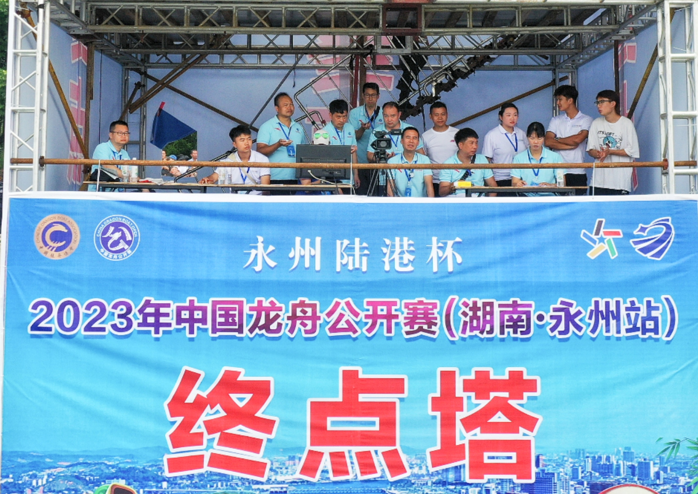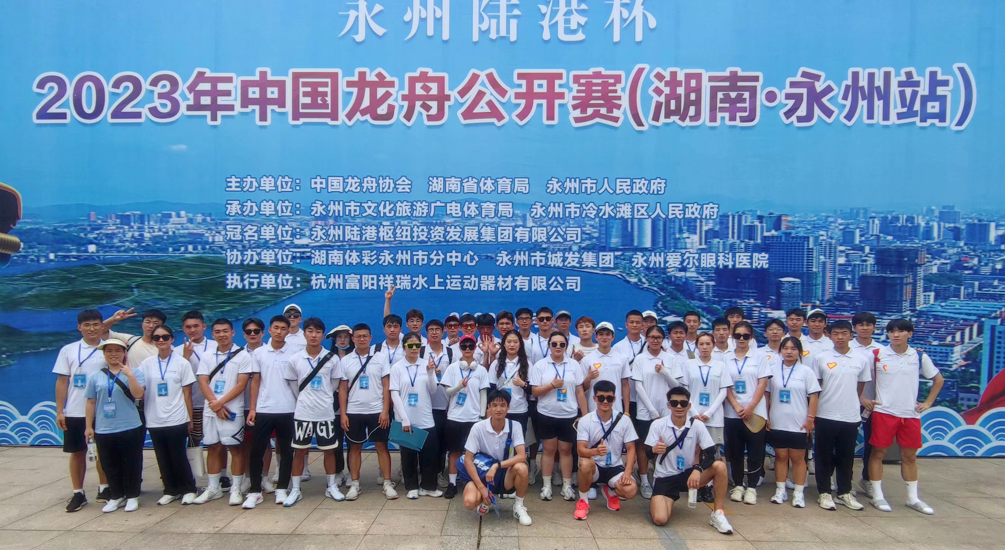 本网讯(通讯员 黄婉)6月3日至4日,中国龙舟公开赛湖南永州站在永州市冷水滩滨江公园举办。bat365官网体育学院受永州市文化旅游广电体育局的邀请,派出40名辅助裁判员和12名志愿者参与了本次赛事组织工作,为本次比赛的顺利进行提供了支持。