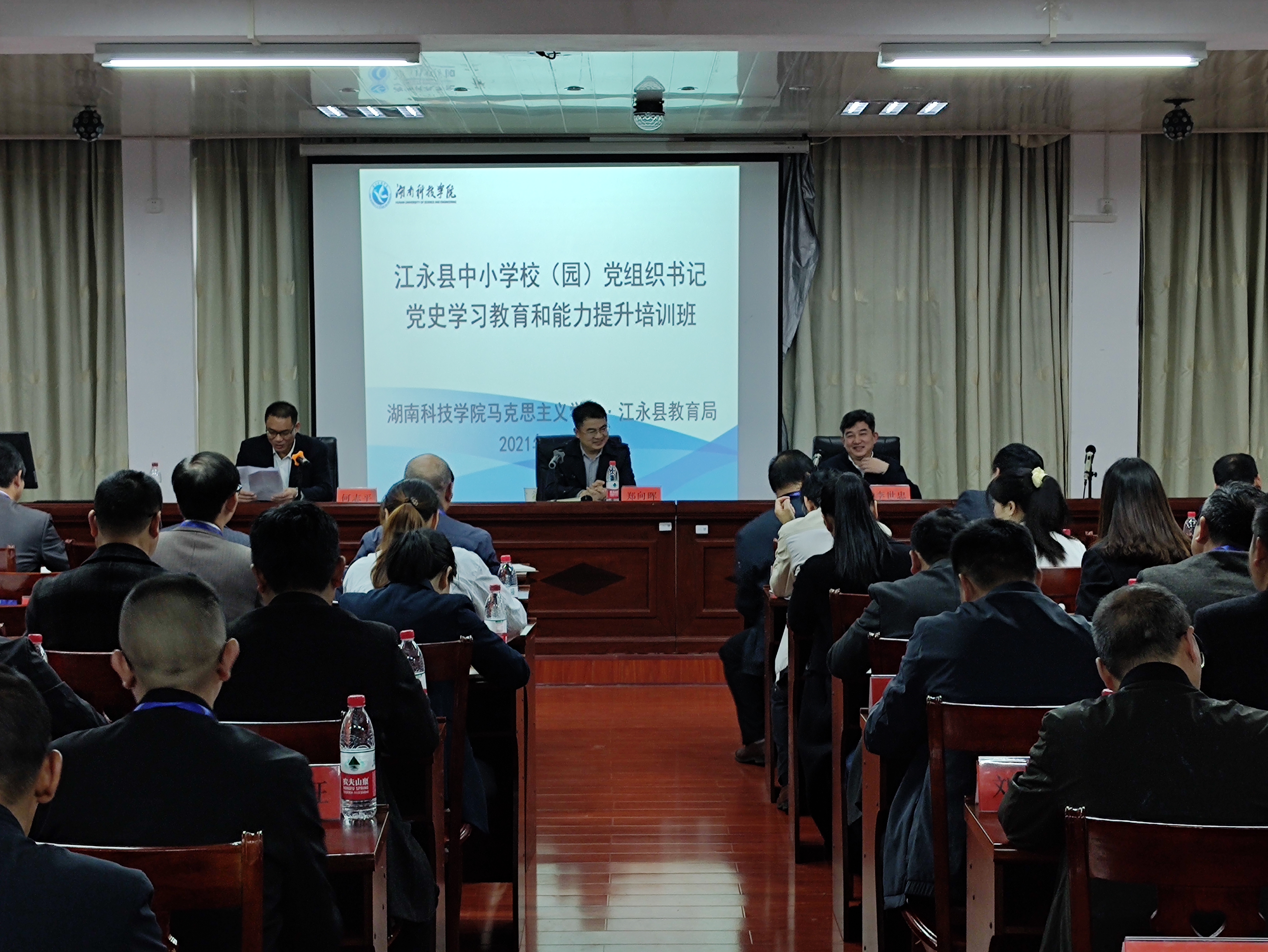 本网讯 4月28日,江永县中小学校(园)党组织书记党史学习教育和能力提升培训班在bat365官网正式开班。该县教育局党委书记、局长李世忠,bat365官网马克思主义学院党总支书记郑向晖等参加了开班仪式。