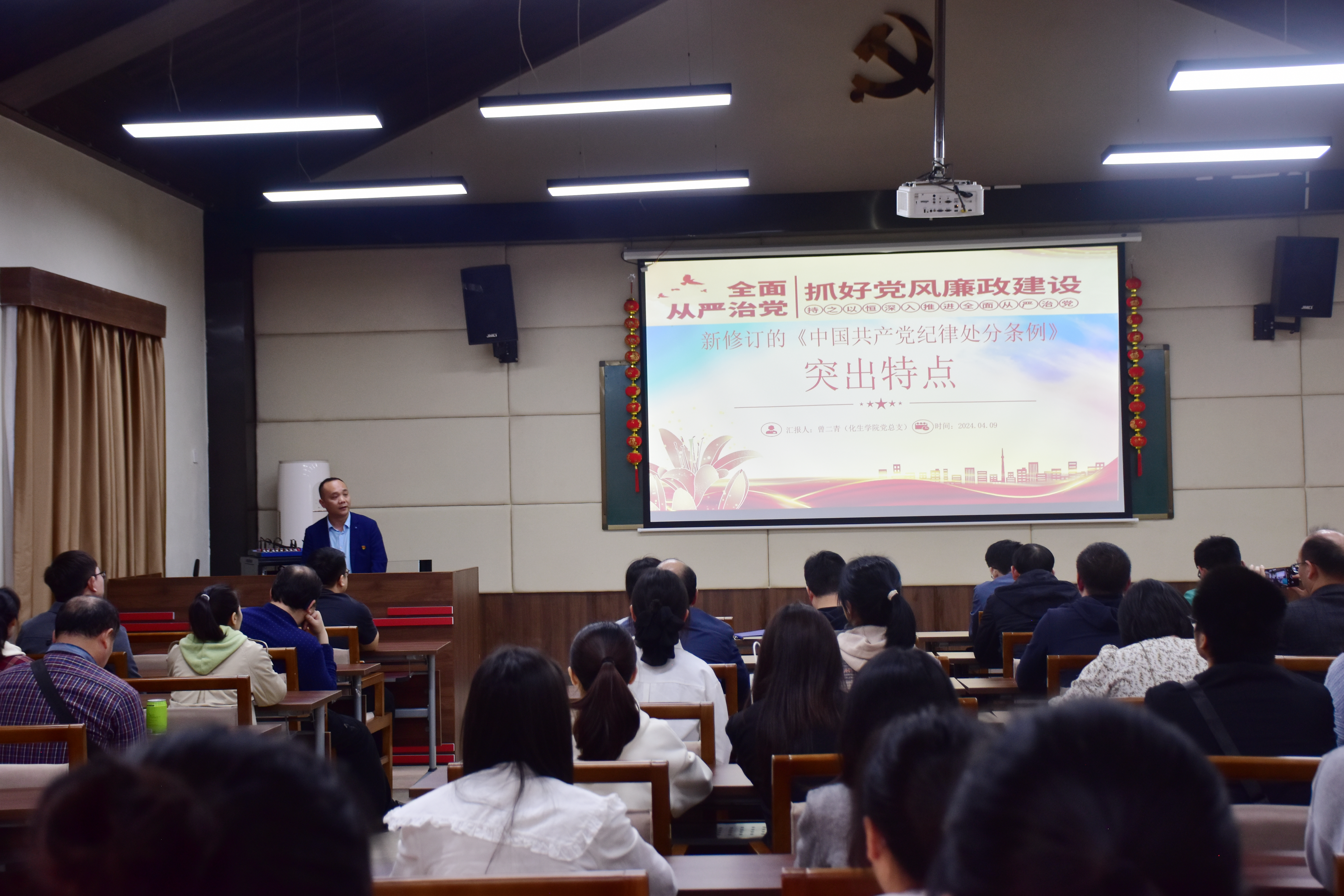 活动中,全体师生党员在学院党总支书记曾二青的带领下重温入党誓词,提醒党员始终牢记初心使命,对标党员标准,严格要求自我,做合格党员。