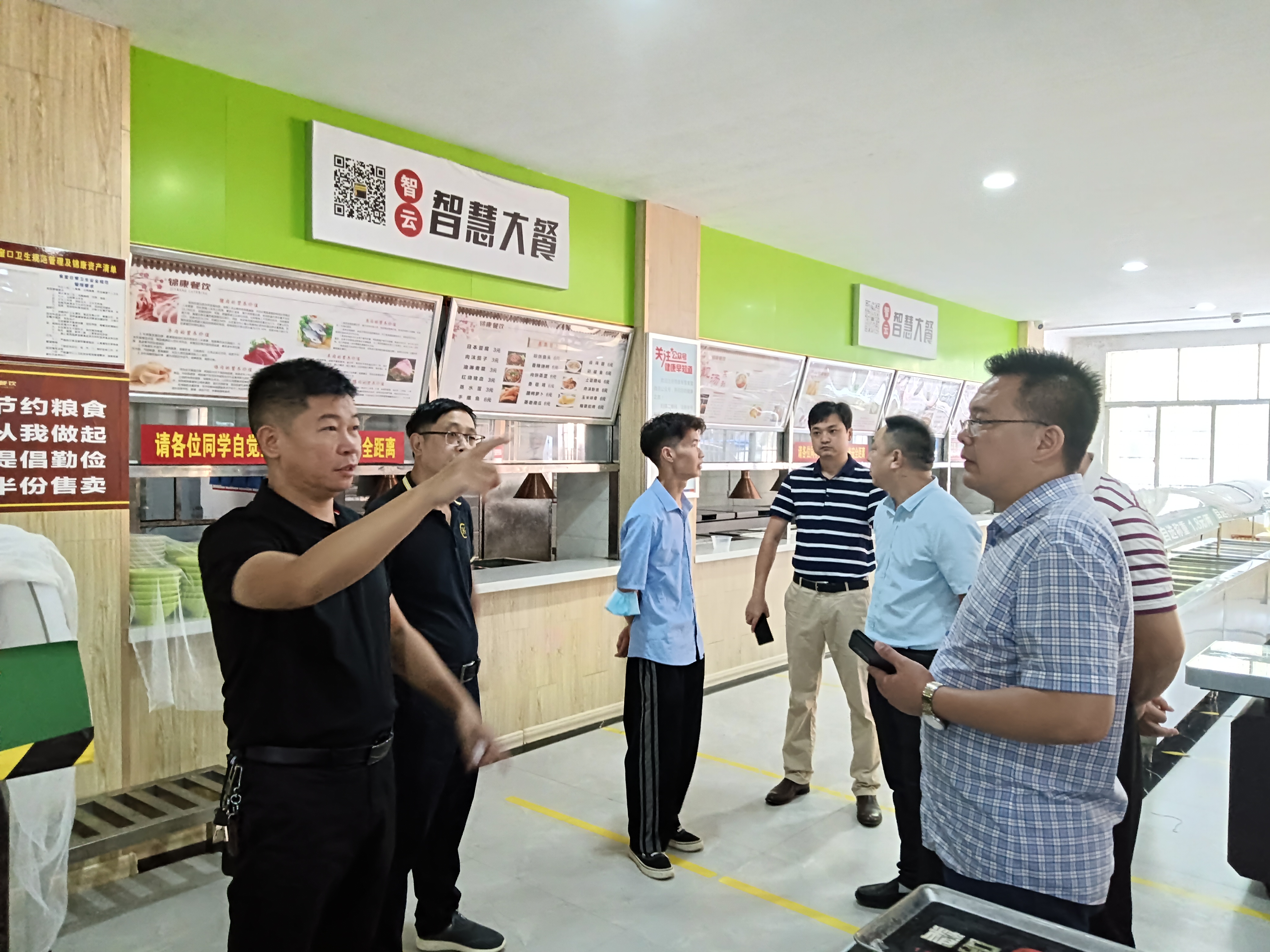 谷利民对邓国林一行表示欢迎,并介绍了bat365官网后勤服务工作基本情况。邓国林介绍了永州师范高等专科学校后勤服务工作基本情况。考察组先后实地考察了荷园智慧食堂、教工食堂、松园学生食堂。在考察过程中,双方就疫情期间学生食堂就餐管理、食品安全监督、食材采购、稳定物价等方面进行深入交流。