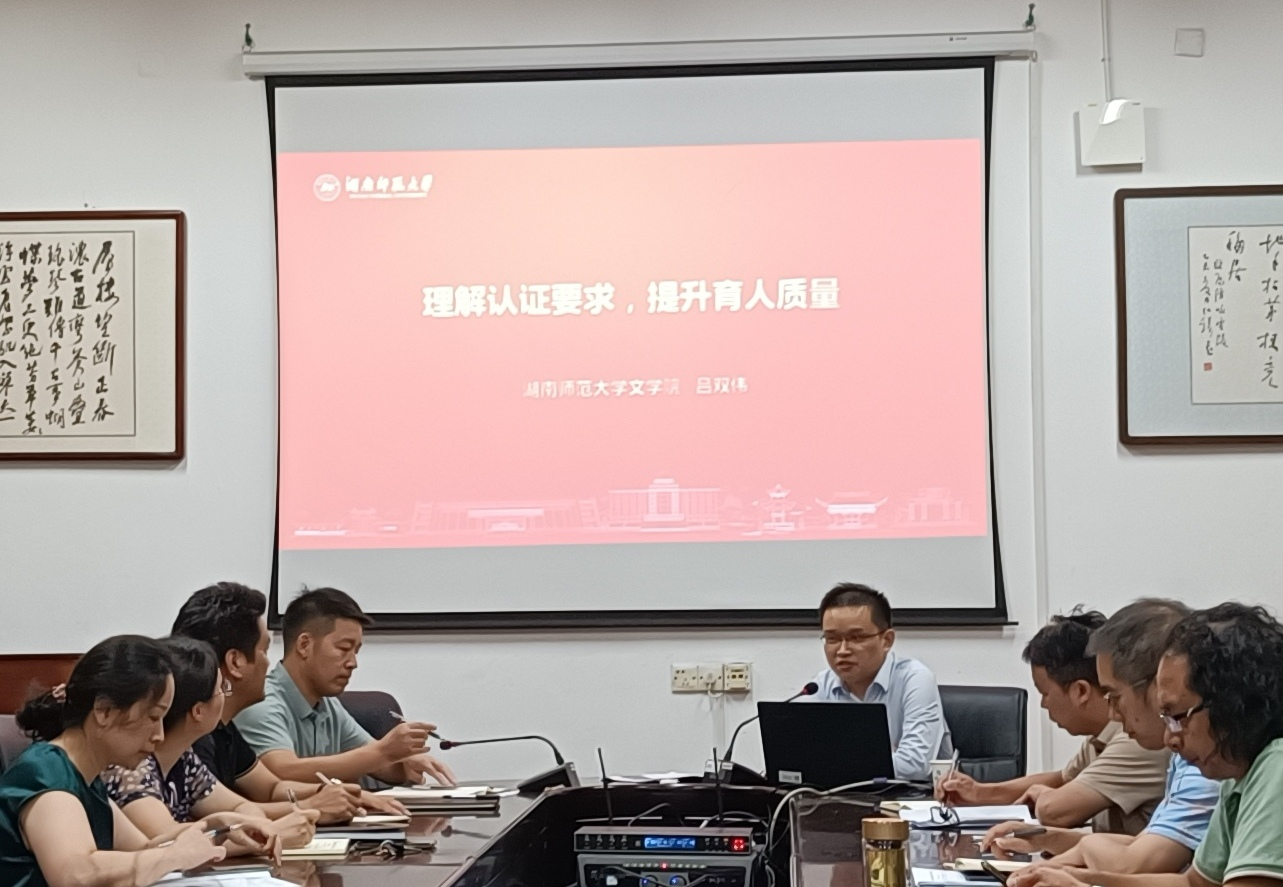 本网讯 9月22日晚,文法学院邀请教育部青年长江学者、国家社科基金重大招标项目首席专家、湖南师范大学文学院副院长、博士生导师吕双伟教授来校开展师范认证专题讲座。文法学院院长贡贵训、党总支书记谷显明及汉语言文学专业全体教师等参加。