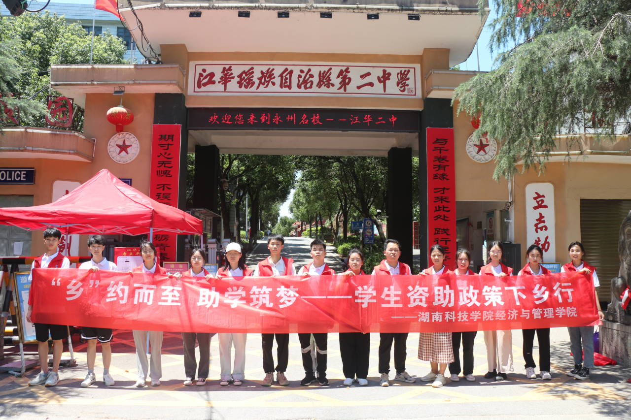 本网讯 6月26日,经济与管理学院“三下乡”社会实践团队在沱江镇二中开展“乡”约而至,助学筑梦—学生资助政策宣传活动。实践团队由该院副书记龙诗颐以及辅导员和17名学生组成。