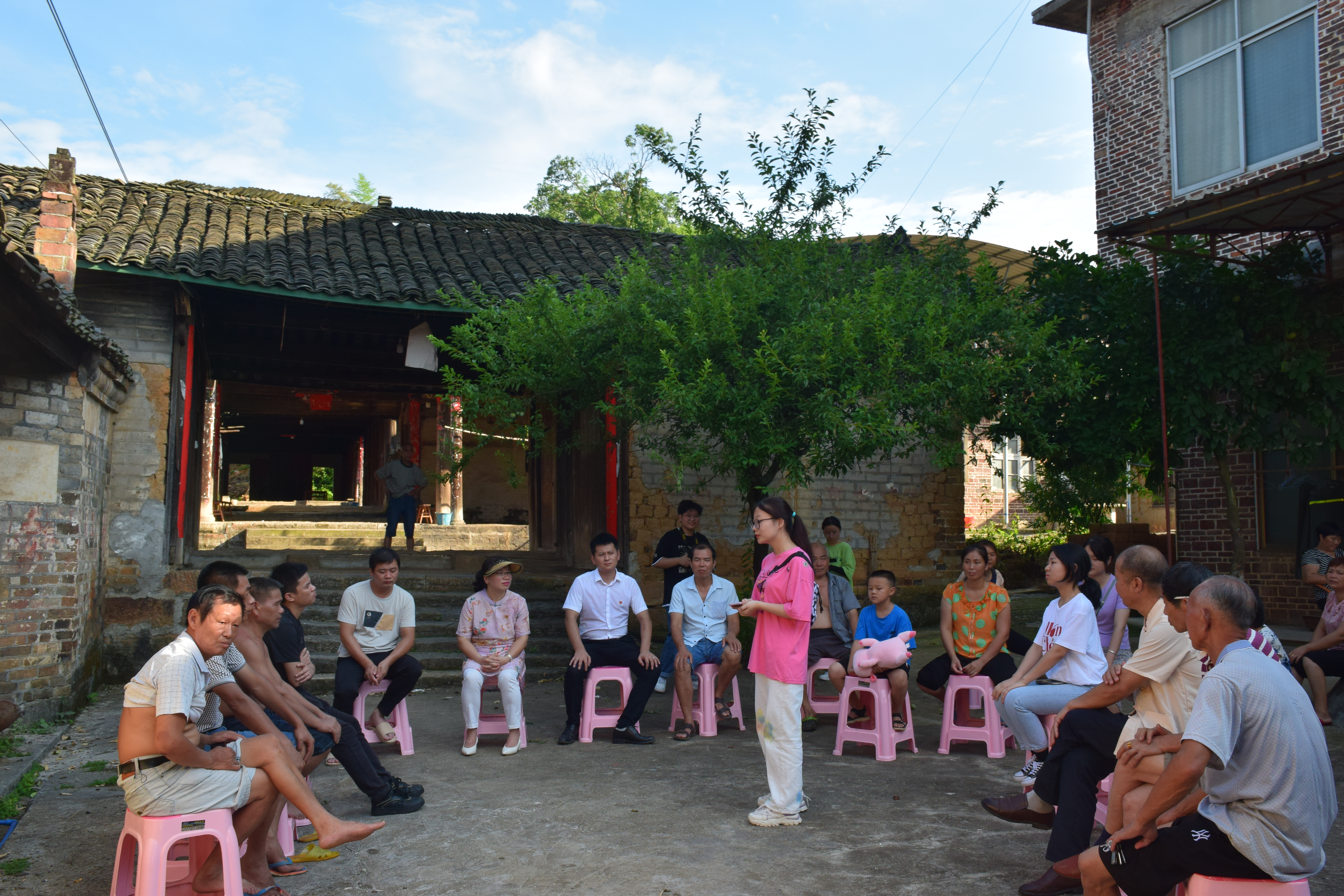 本网讯 7月7日,传媒学院传承红色基因科院党史学习实践团走进祁阳市潘市镇桐木村,为村民讲述红色故事,弘扬革命精神。