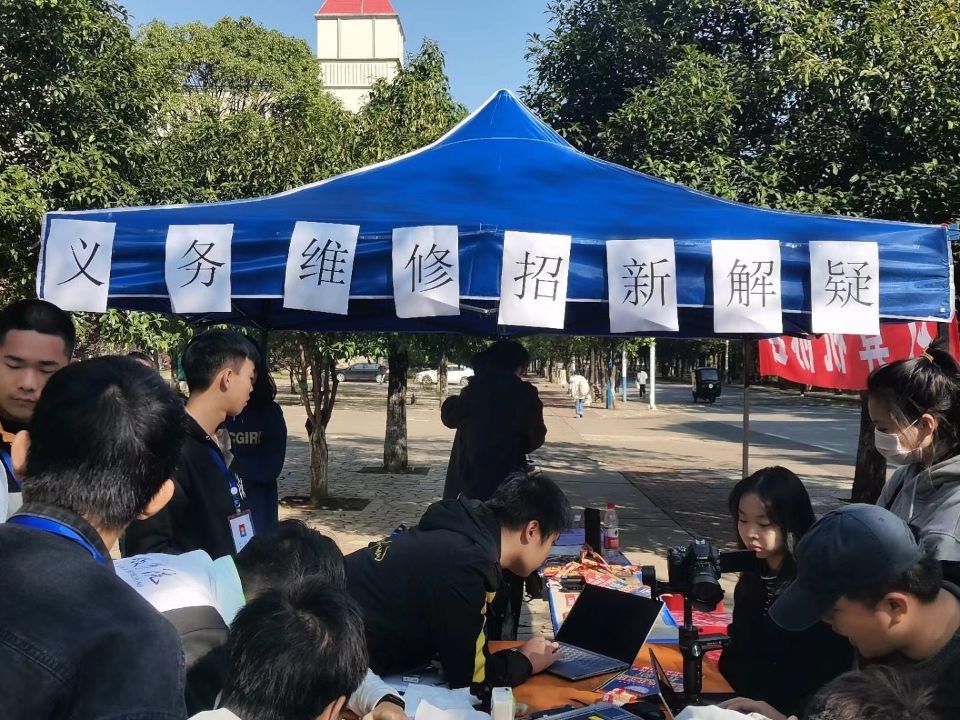 志愿者们在明理楼前搭建了服务点。此次义务维修服务项目主要包括电脑检测、有线及无线网络维护、电脑除尘、系统安装与维护、电脑维修常识、病毒的查杀与防御、疑难咨询等。对于不方便移动的台式电脑,还提供主动上门服务。活动过程中,志愿者们热情诚恳,积极主动,以耐心的态度接待每一位咨询者,用专业的技能维修每一台电脑,让师生们不出校园即可享受到优质的维修服务,为师生们解决了实际困难,充分展现了信息院学子积极向上、乐于奉献的优秀品质。