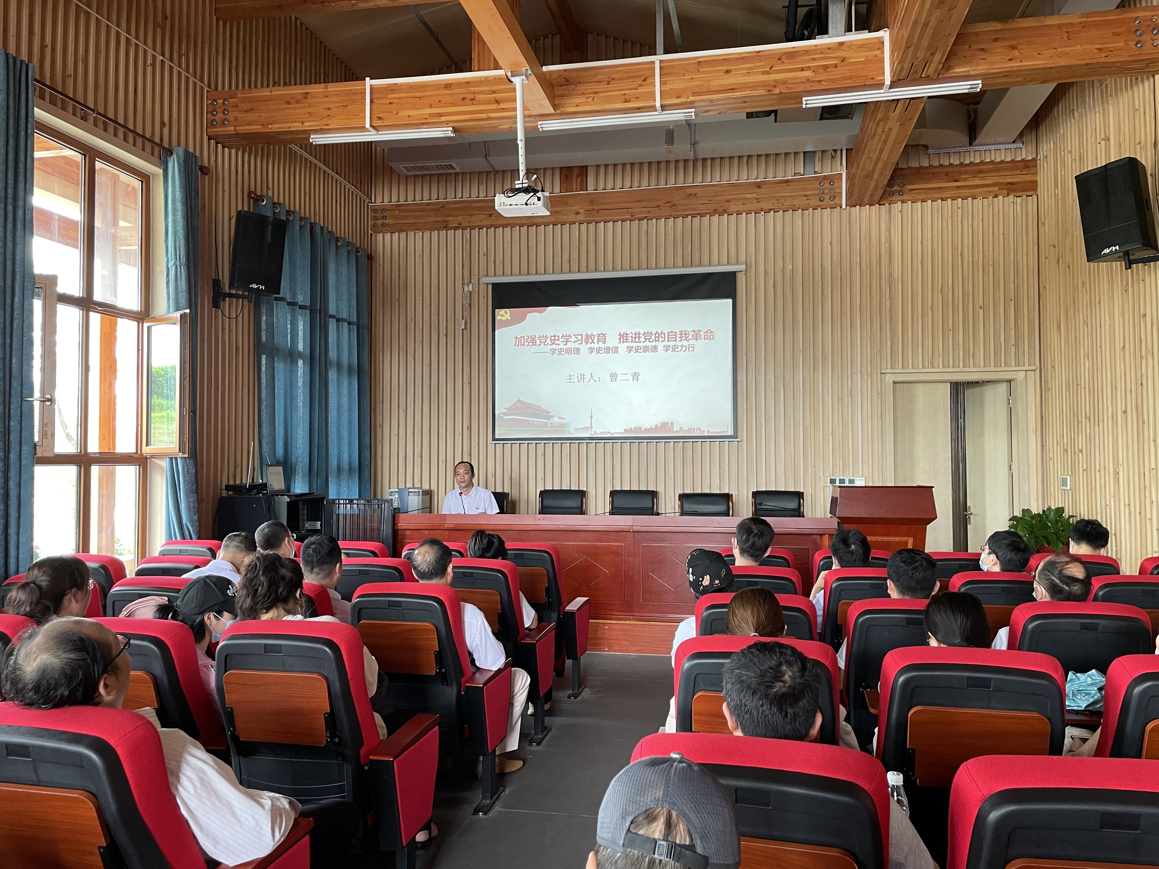 参观结束后,学院党总支书记曾二青为大家上了题为《加强党史学习教育,推进党的自我革命》的专题党课。
