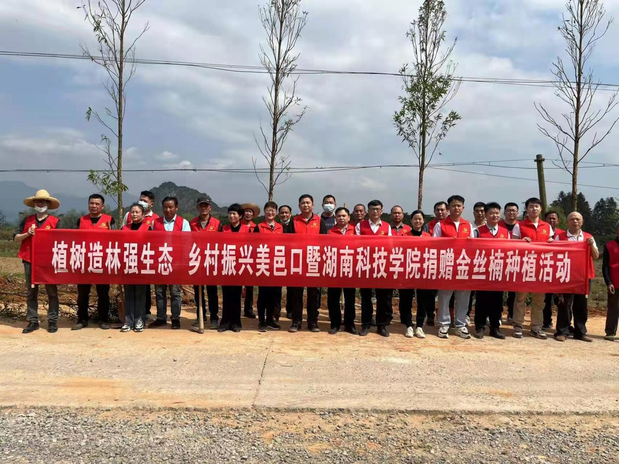 本网讯 3月11日上午,学校向江永县邑口村捐赠70余棵金丝楠树,江永县委常委、副县长何开银,副县长陈小明、桃川镇部分党员干部、bat365中文官方网站驻邑口村工作队及邑口村部分干部群众共同栽下了这批金丝楠树。