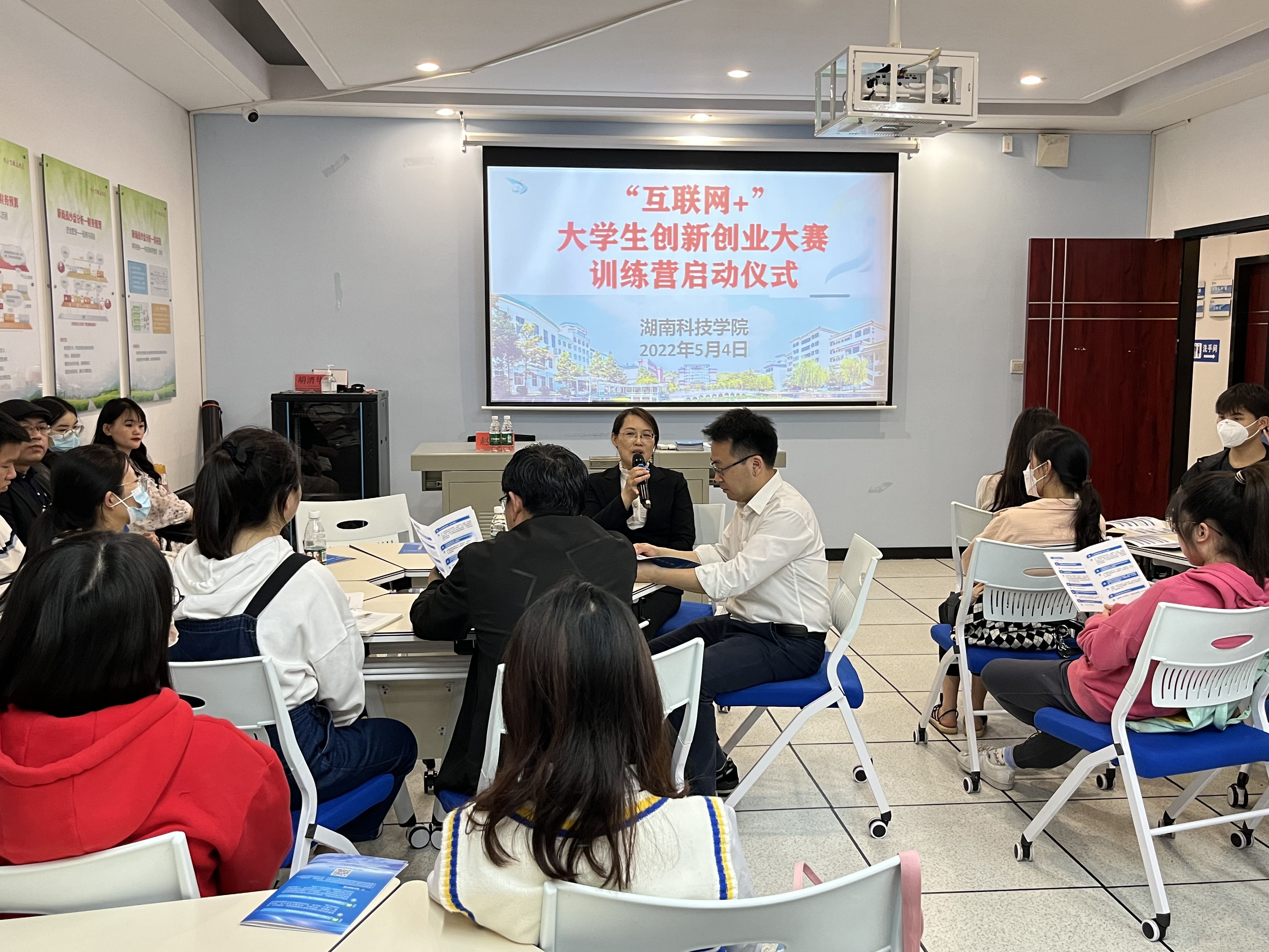 本网讯 5月4日晚,bat365官网2022年“互联网+”大学生创新创业大赛训练营启动仪式在创新创业学院209教室举行。副校长郑银芳出席,参赛团队成员及指导教师、创新创业学院相关工作人员等70余名师生参加,创新创业学院院长胡清华主持。