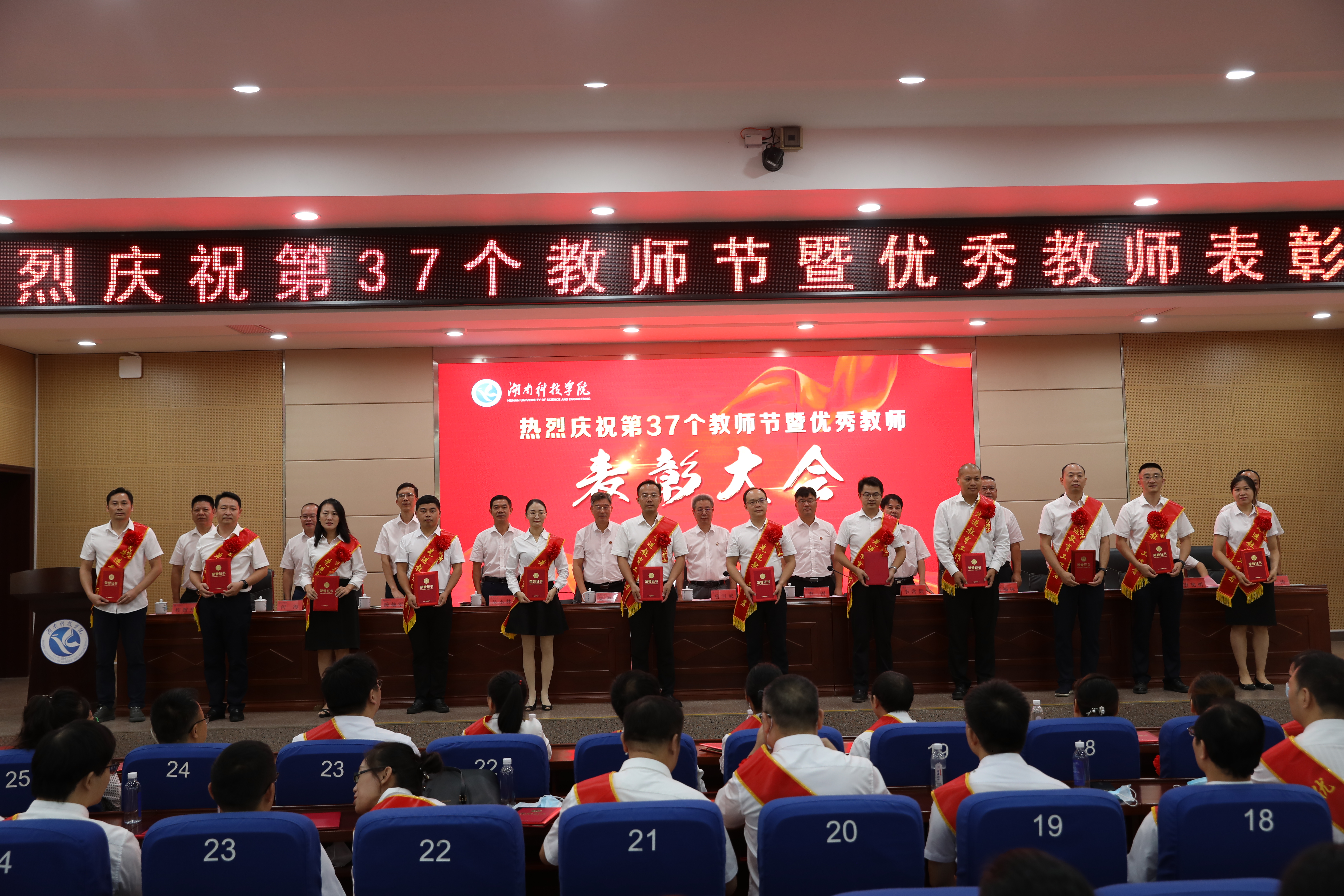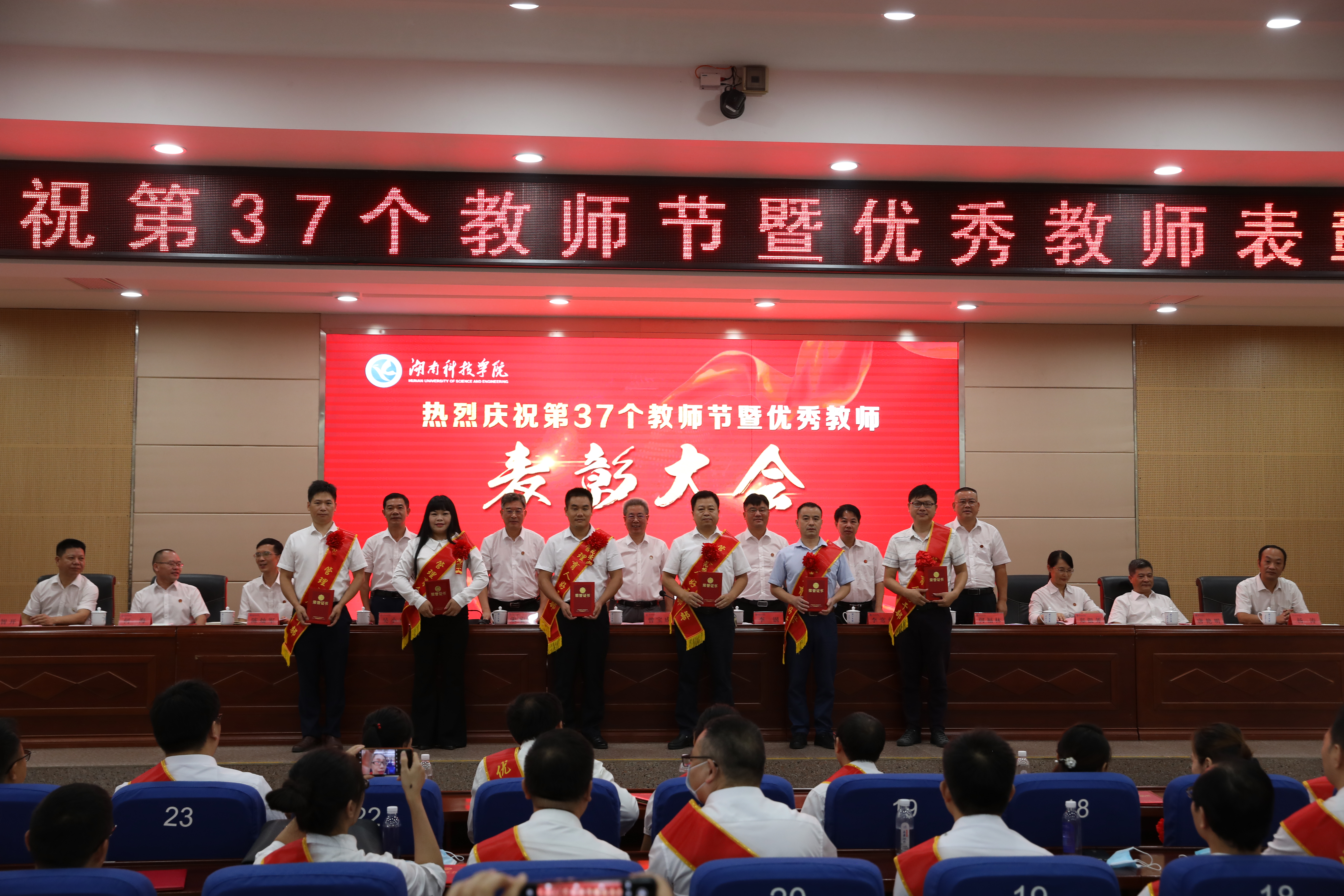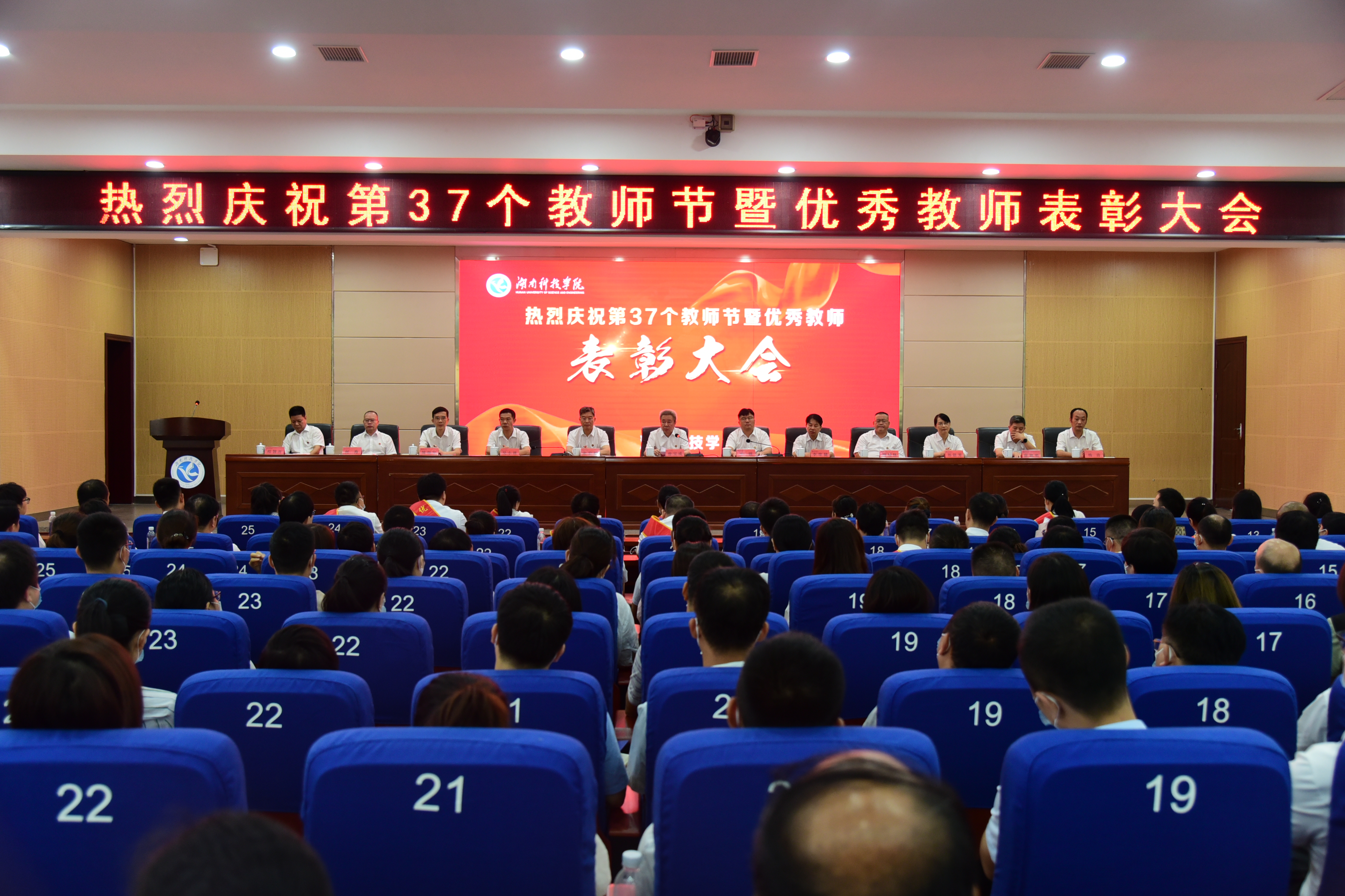 本网讯 9月9日上午,学校在潇湘大讲堂举行第37个教师节庆祝表彰大会,党委书记曾宝成,党委副书记、校长李钢,校领导宋宏福、李常健、吴小林、何福林、陈灿军、郑银芳、何海,党委委员、组织部长杨涛出席表彰大会。